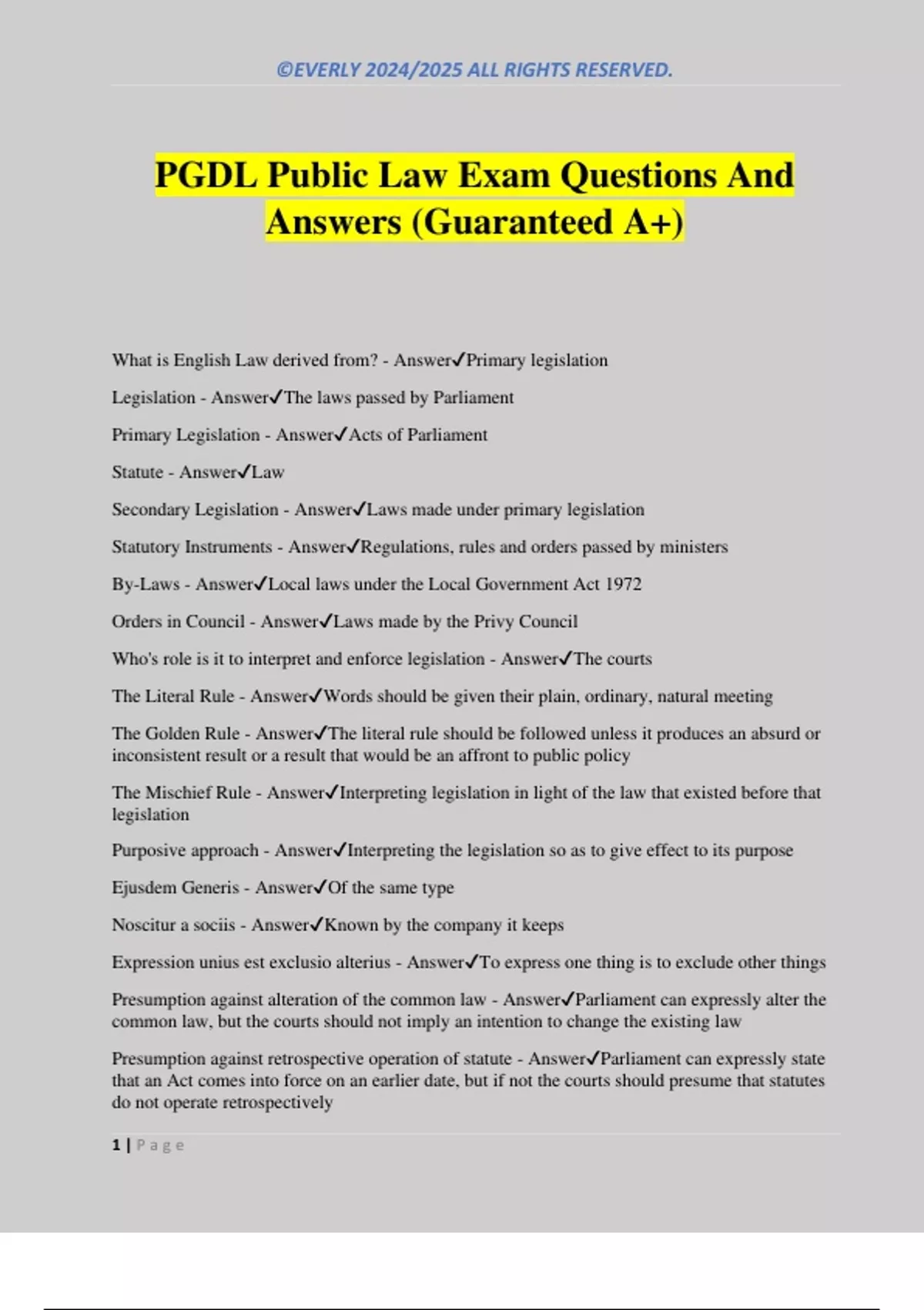 Secondary Legislation - Answer✔Laws made under primary legislation
