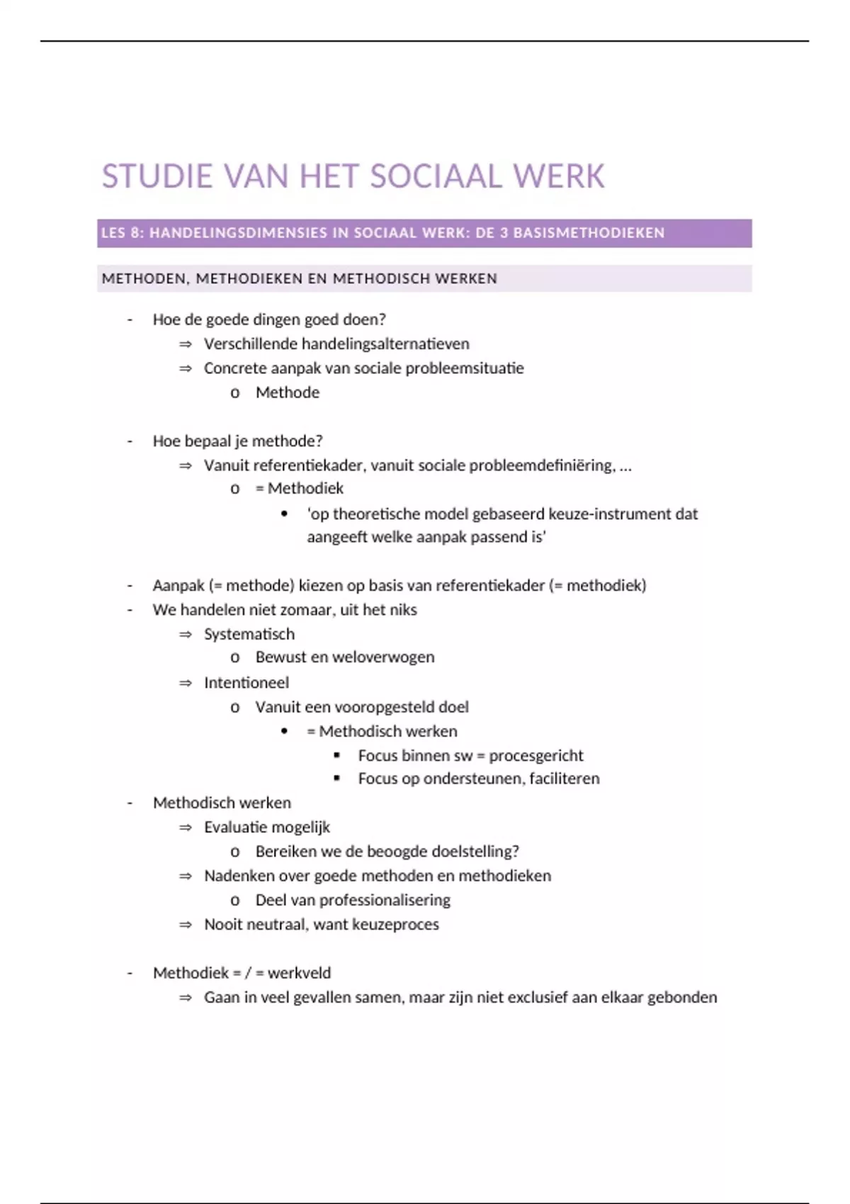 LES 8: HANDELINGSDIMENSIES IN SOCIAAL WERK: DE 3 BASISMETHODIEKEN