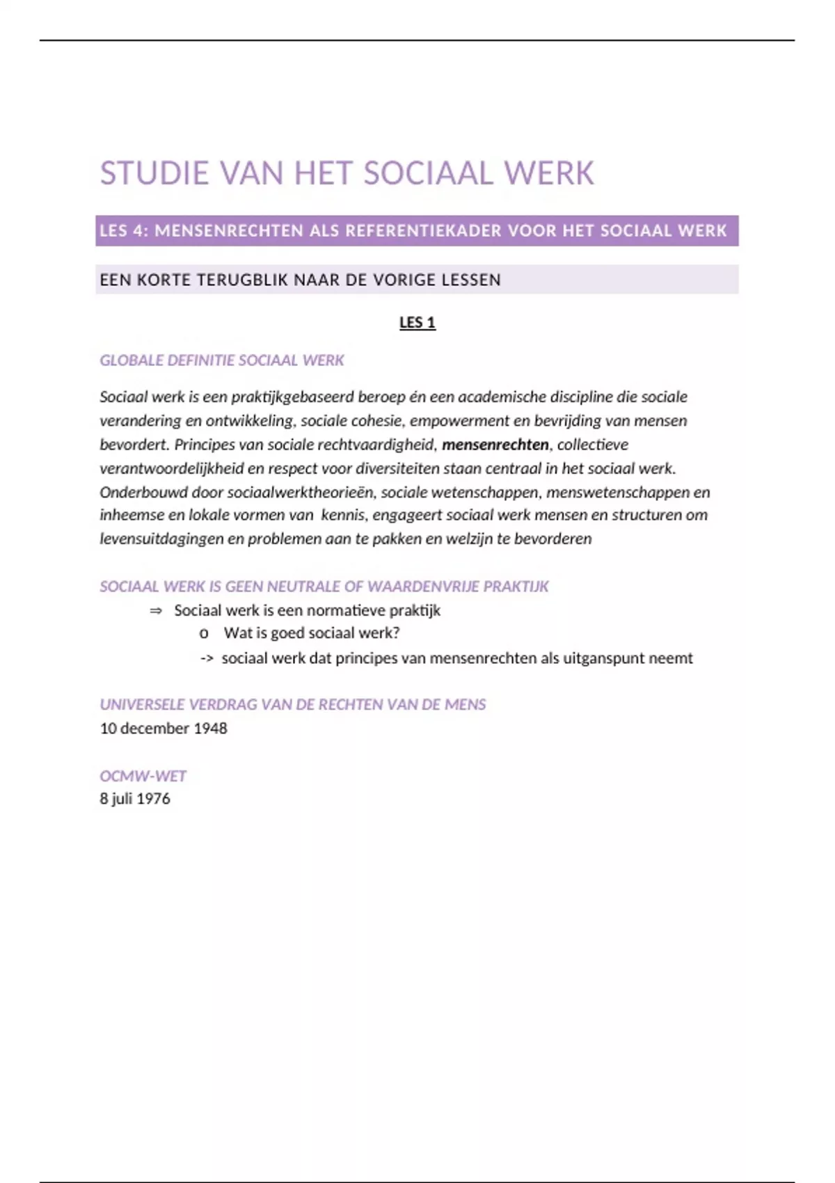 Samenvatting 'Studie van het sociaal werk' Les 4: mensenrechten