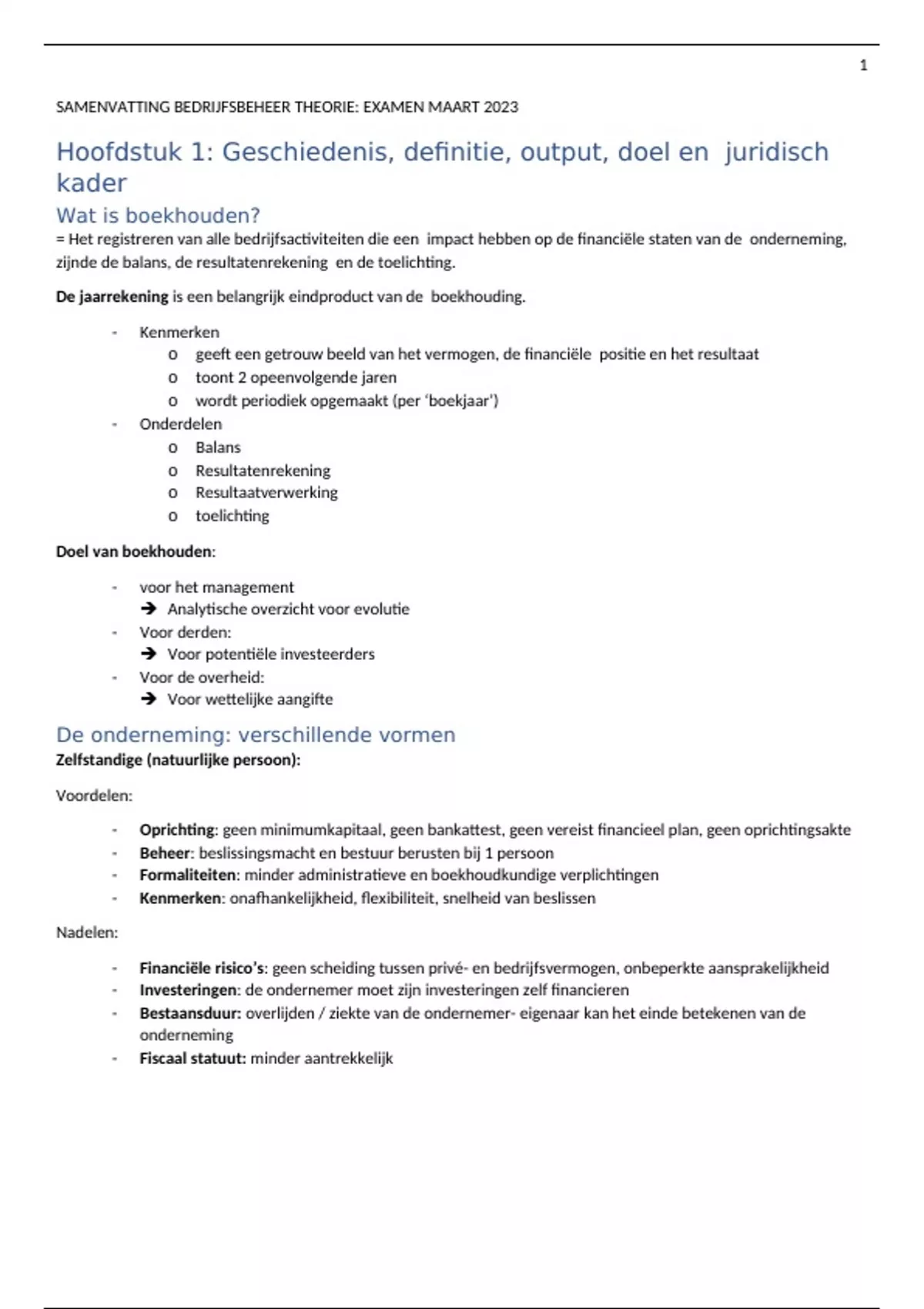 SAMENVATTING BEDRIJFSBEHEER THEORIE: EXAMEN MAART 2023