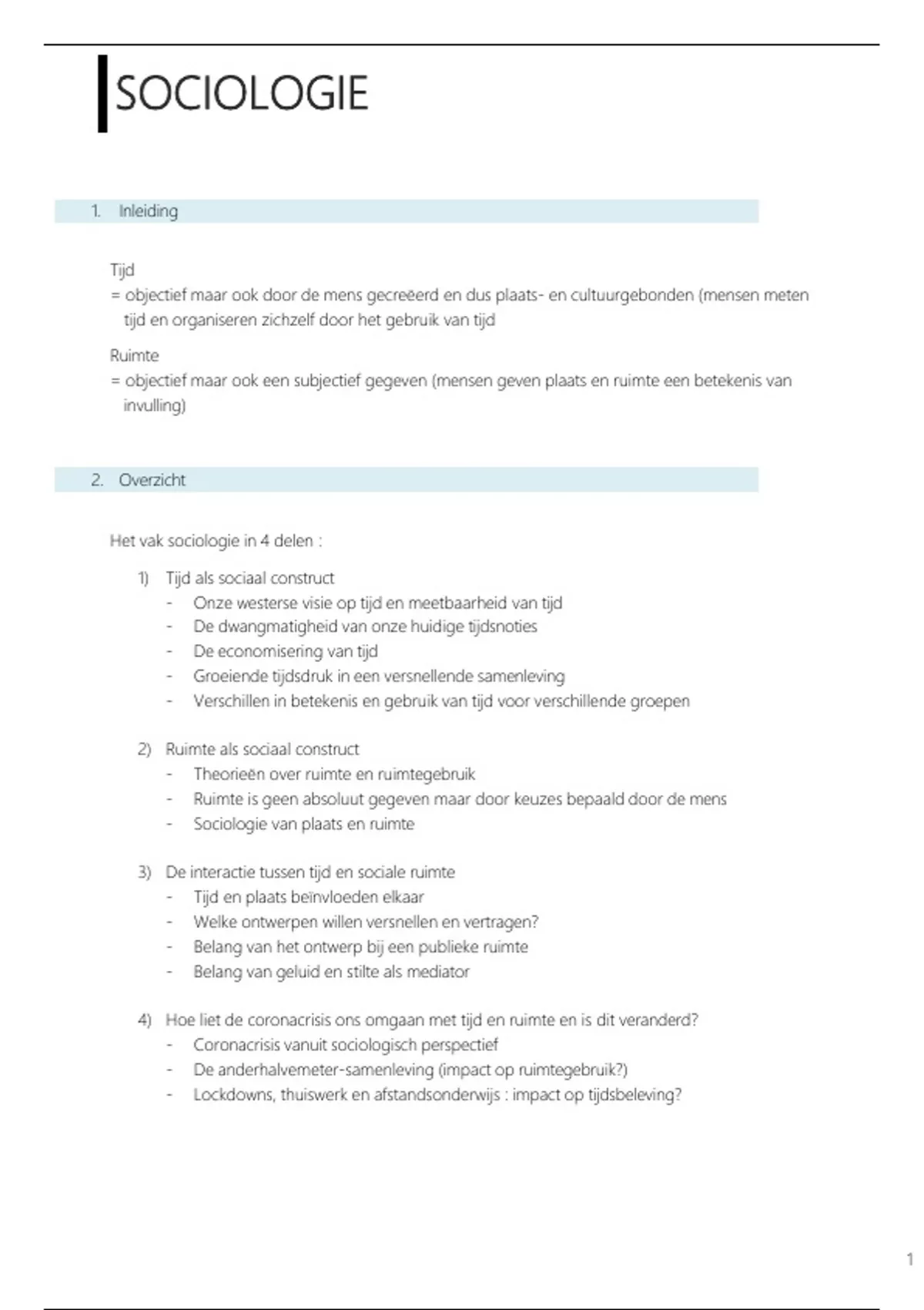 , SOCIOLOGIE DEEL 1