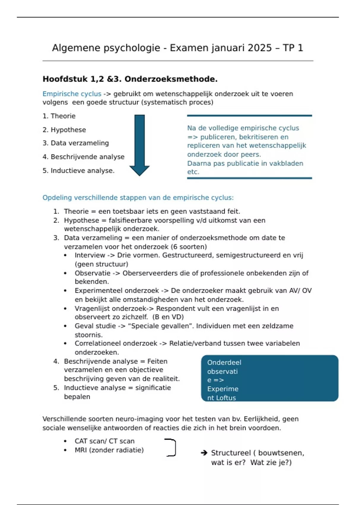 Samenvatting van alle leerstof voor het examen algemene psychologie - 1ste semester, 1ste jaar toegepaste psychologie - Hoofdstukken: situering, overzicht & geschiedenis / onderzoeksmethode/ waarneming/ pseudopsycholgie/ geheugen/ Aandacht/ bewustzijn / getallen en wiskunde/ denken/ taal/ leren / emotie & motivatie/ intelligentie. BEVAT OOK een extra document waarin het geheugen systeem is samengevat in een woordspin