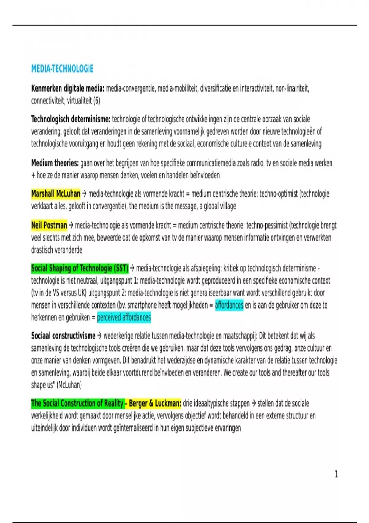 Dit document is een beknopte, maar zeer volledige samenvatting per belangrijk onderdeel van het vak mediasociologie, gegeven in de 1e bachelor (2 semester) communicatiewetenschappen door professor Stef Aupers. Door dit document te leren behaalde ik een 14/20