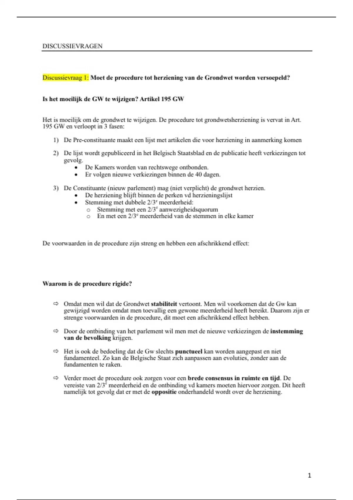 Discussievraag 1: Moet de procedure tot herziening van de Grondwet worden versoepeld?