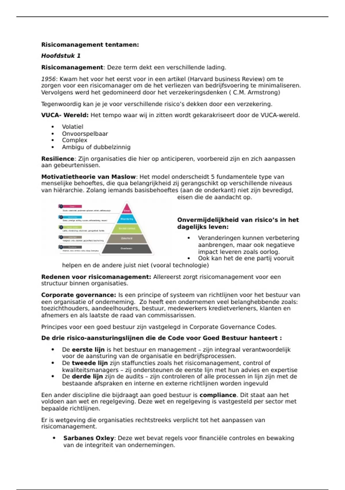 Dit is een samenvatting van het boek Risicomanagement. Dankzij deze samenvatting heb ik een 8 gehaald voor het tentamen.