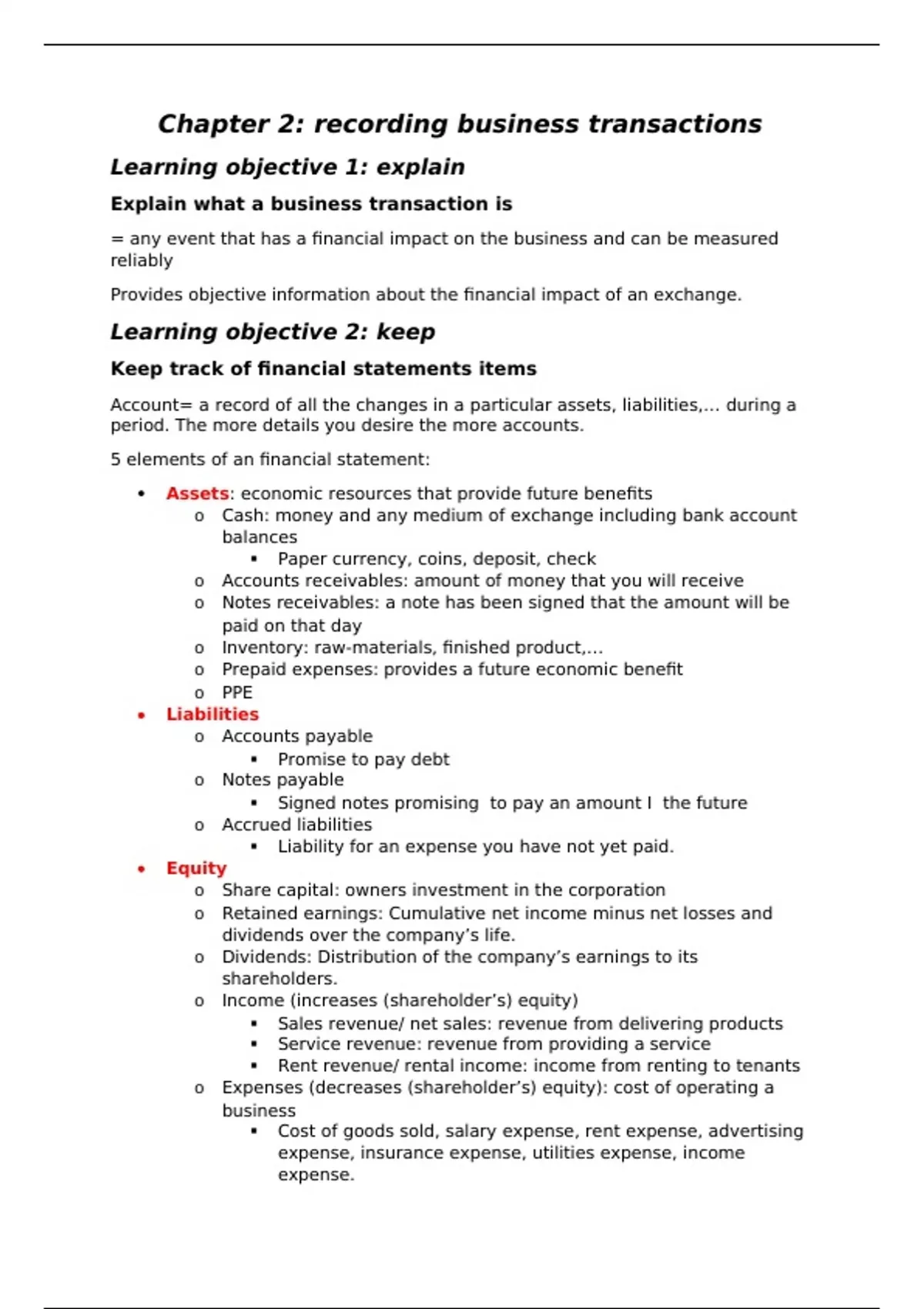 Account= a record of all the changes in a particular assets, liabilities,… during a