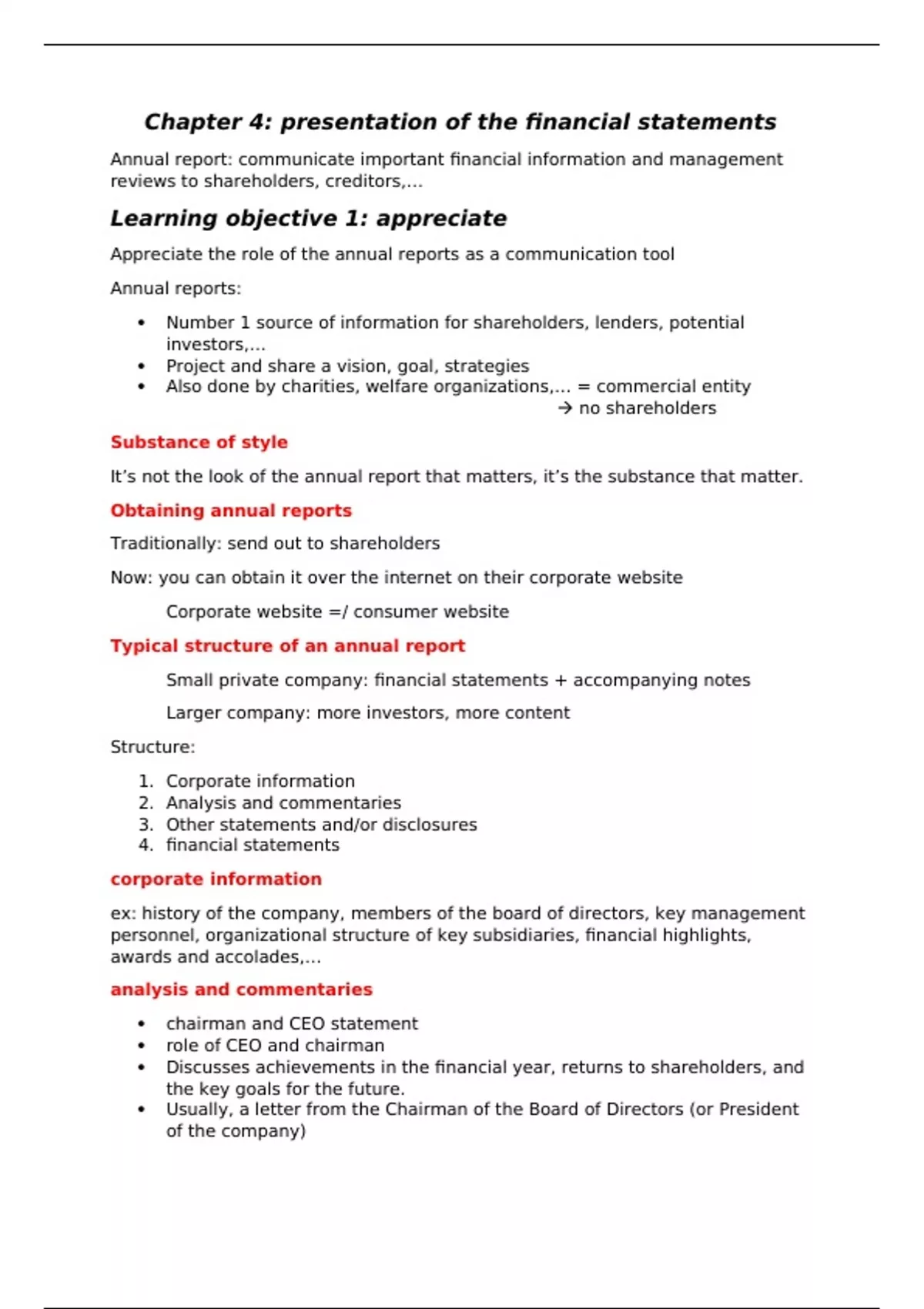 Chapter 4: presentation of the financial statements