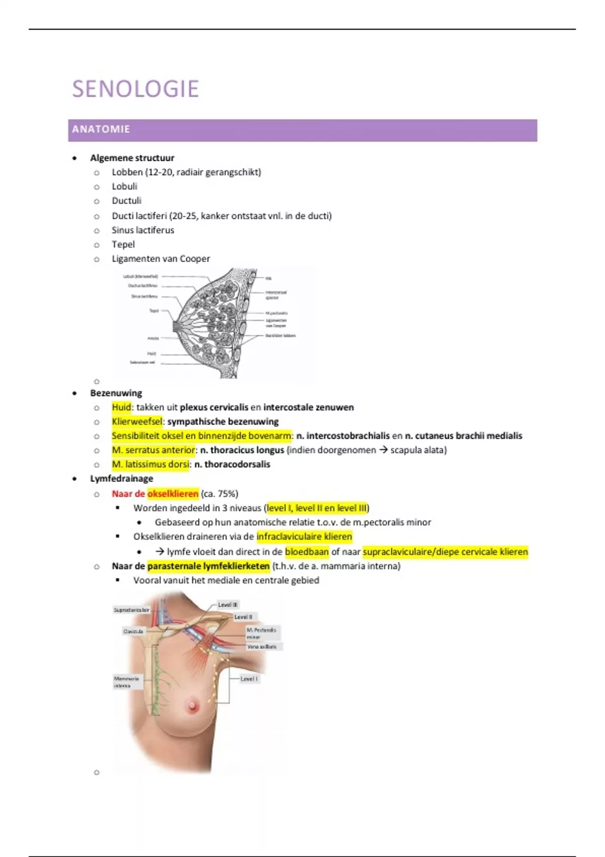 o Naar de parasternale lymfeklierketen (t.h.v. de a. mammaria interna)