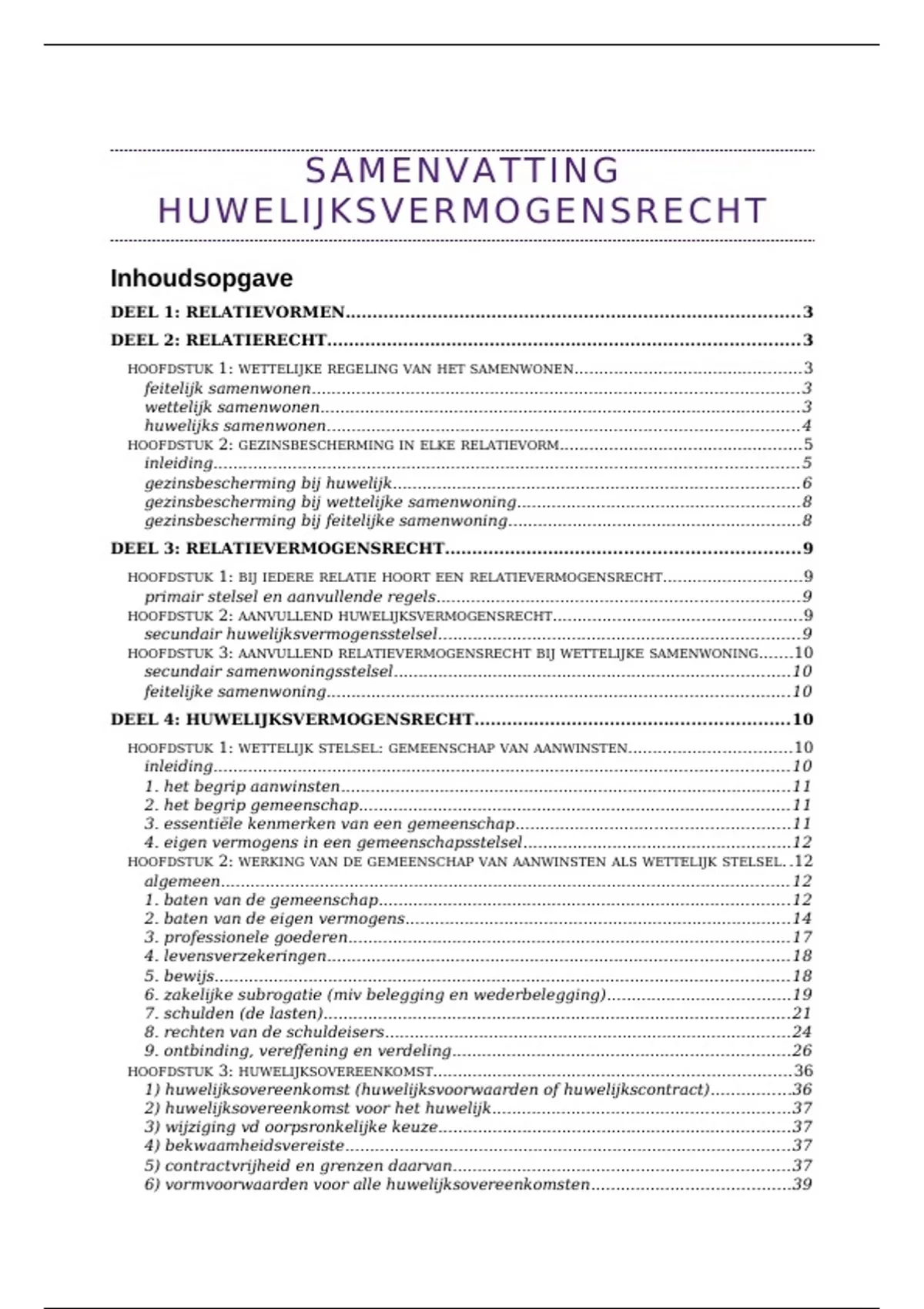 1) huwelijksovereenkomst (huwelijksvoorwaarden of huwelijkscontract)................36