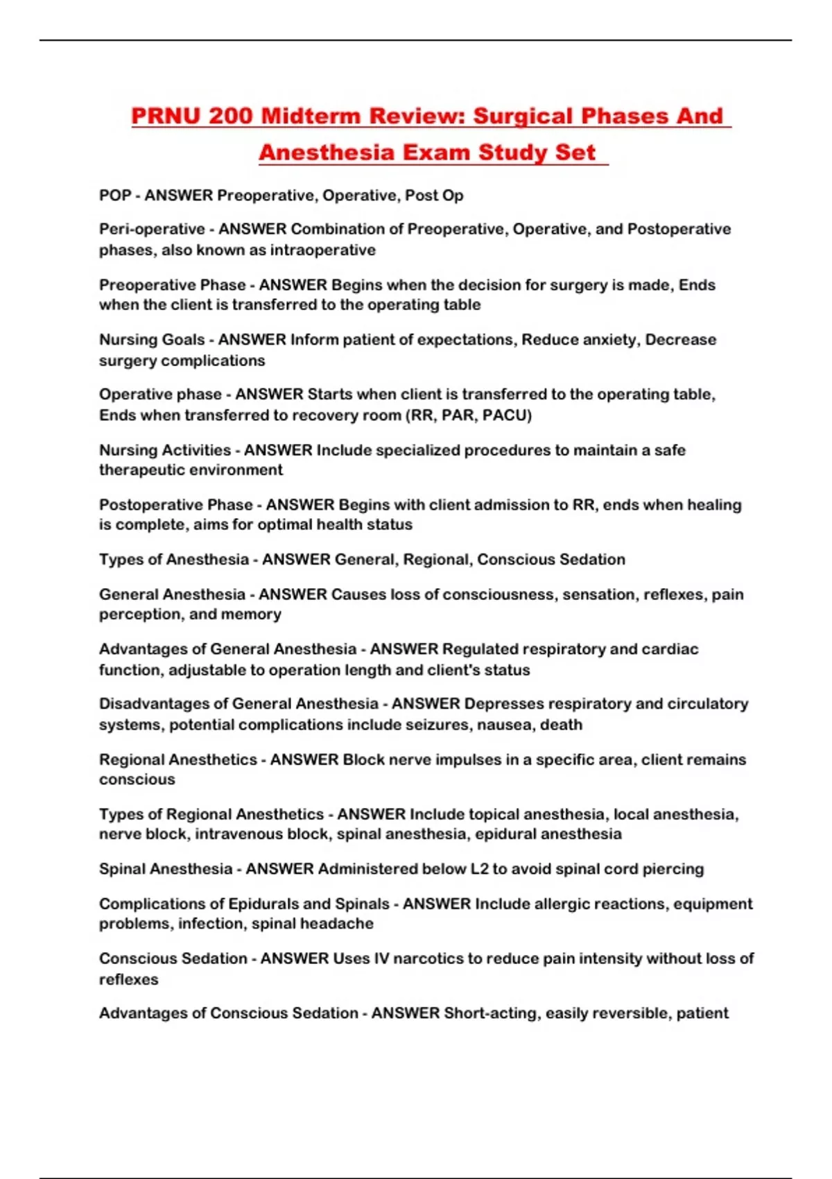 Anesthesia Exam Study Set