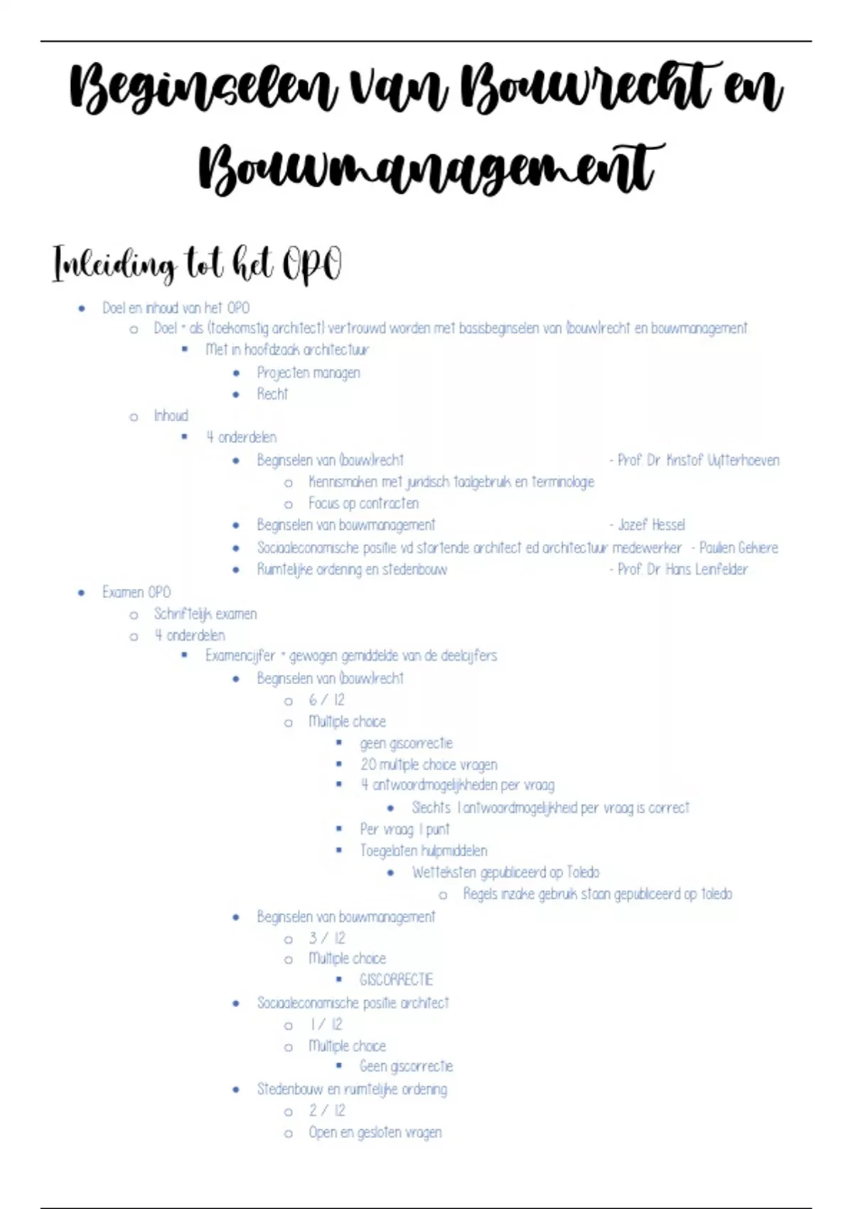 o Doel = als (toekomstig architect) vertrouwd worden met basisbeginselen van (bouw)recht en bouwmanagement.