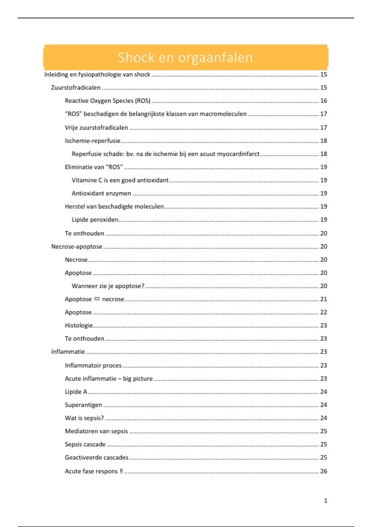 Samenvatting van het vak 'shock en orgaanfalen'. Bevat alle leerstof buiten de aparte powerpoints van soorten shock, maar deze staan ook wel verspreid beschreven in de samenvatting.