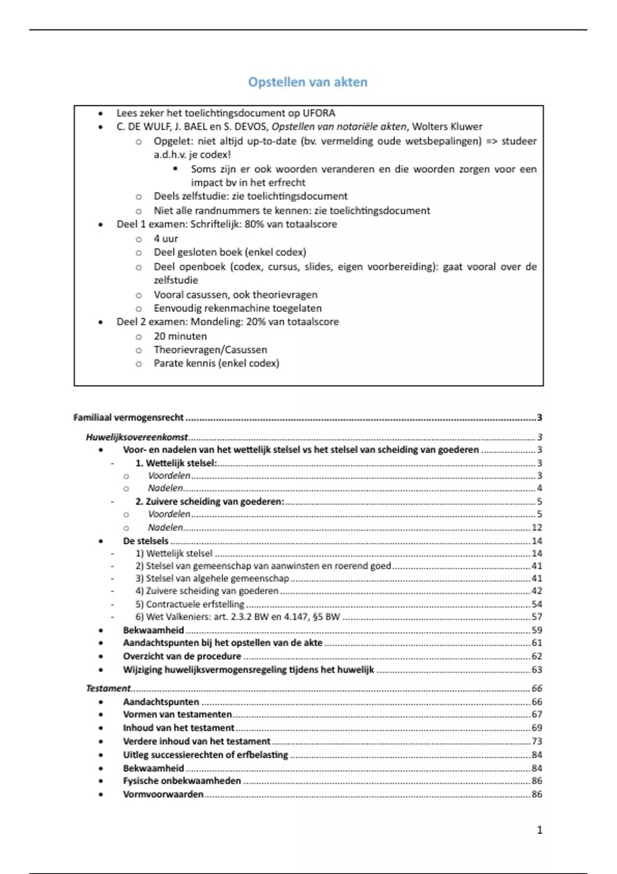 Dit is een samenvatting van semester 1 van opstellen van akten, behorende tot de manama notariaat. Het bevat uitgebreide lesnotities en alle slides.