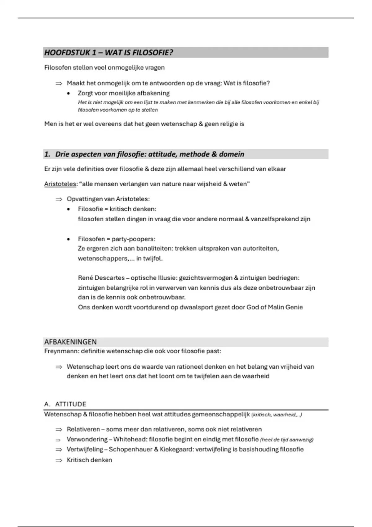 1. Drie aspecten van filosofie: attitude, methode & domein