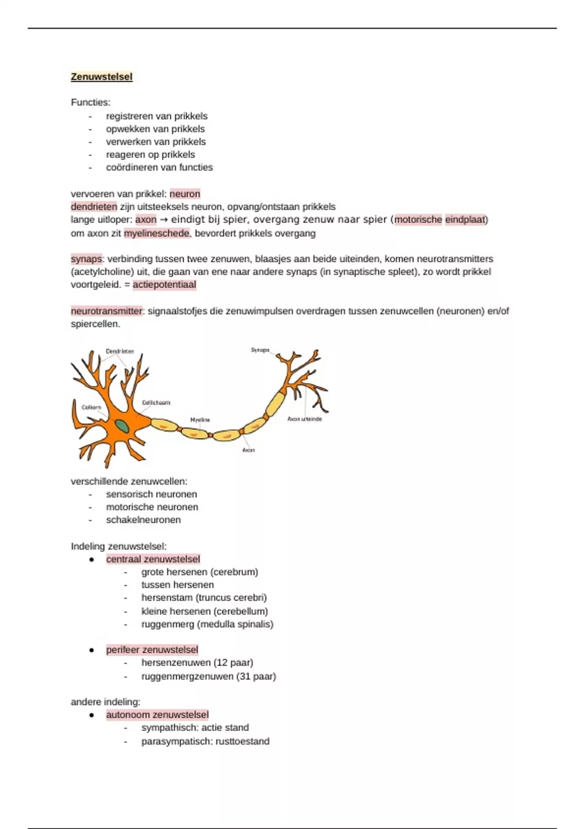 synaps: verbinding tussen twee zenuwen, blaasjes aan beide uiteinden, komen neurotransmitters