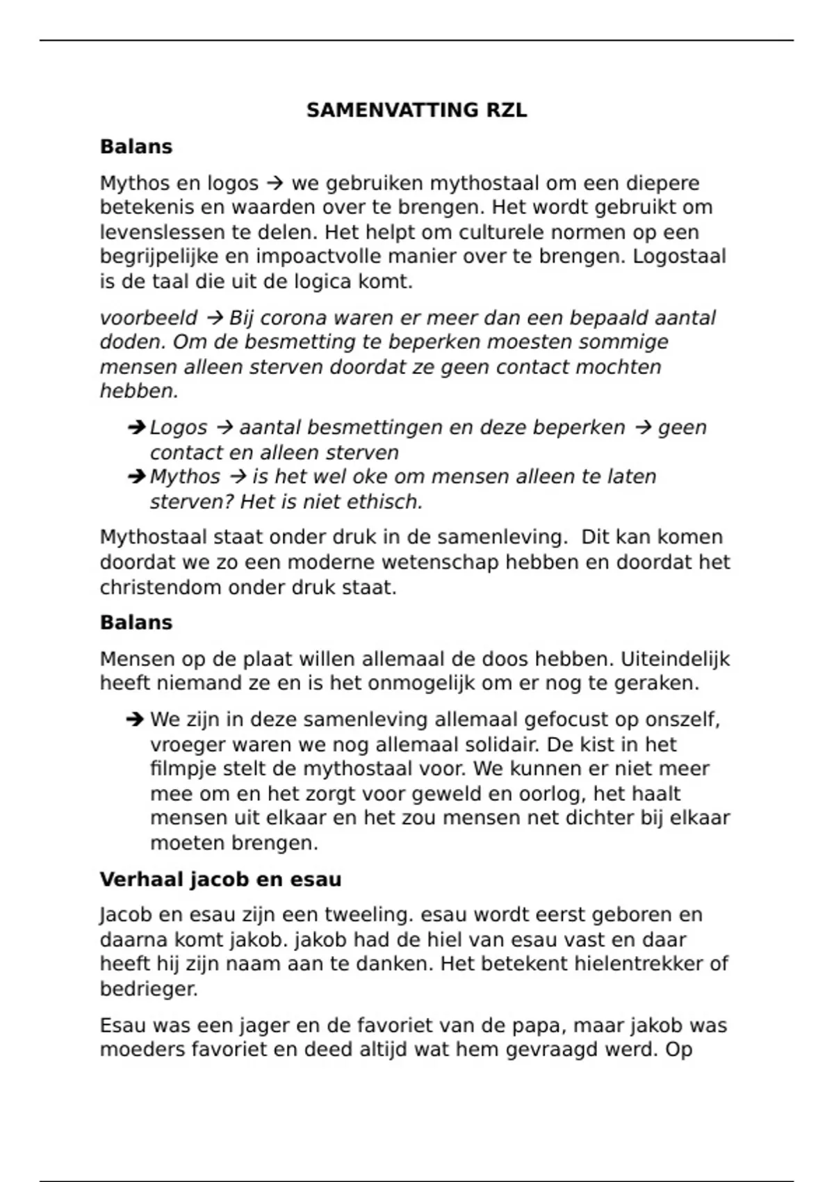 Dit is een samenvatting van RZL in het 1e jaar BASO. behaald cijfer: 14/20 Gemaakt in 2023/2024