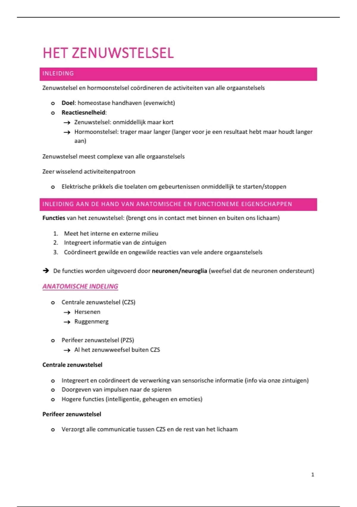 Functies van het zenuwstelsel: (brengt ons in contact met binnen en buiten ons lichaam)