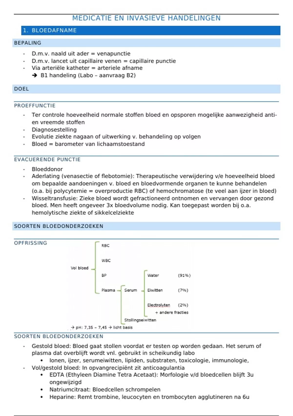 - Aderlating (venasectie of flebotomie): Therapeutische verwijdering v/e hoeveelheid bloed