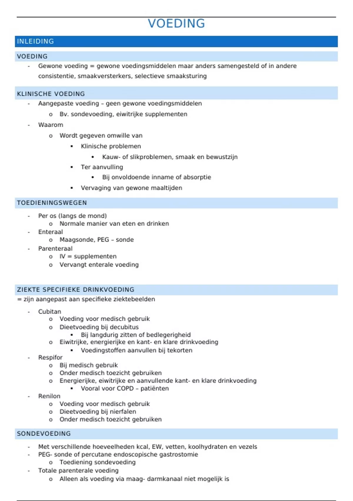 o Toediening sondevoeding