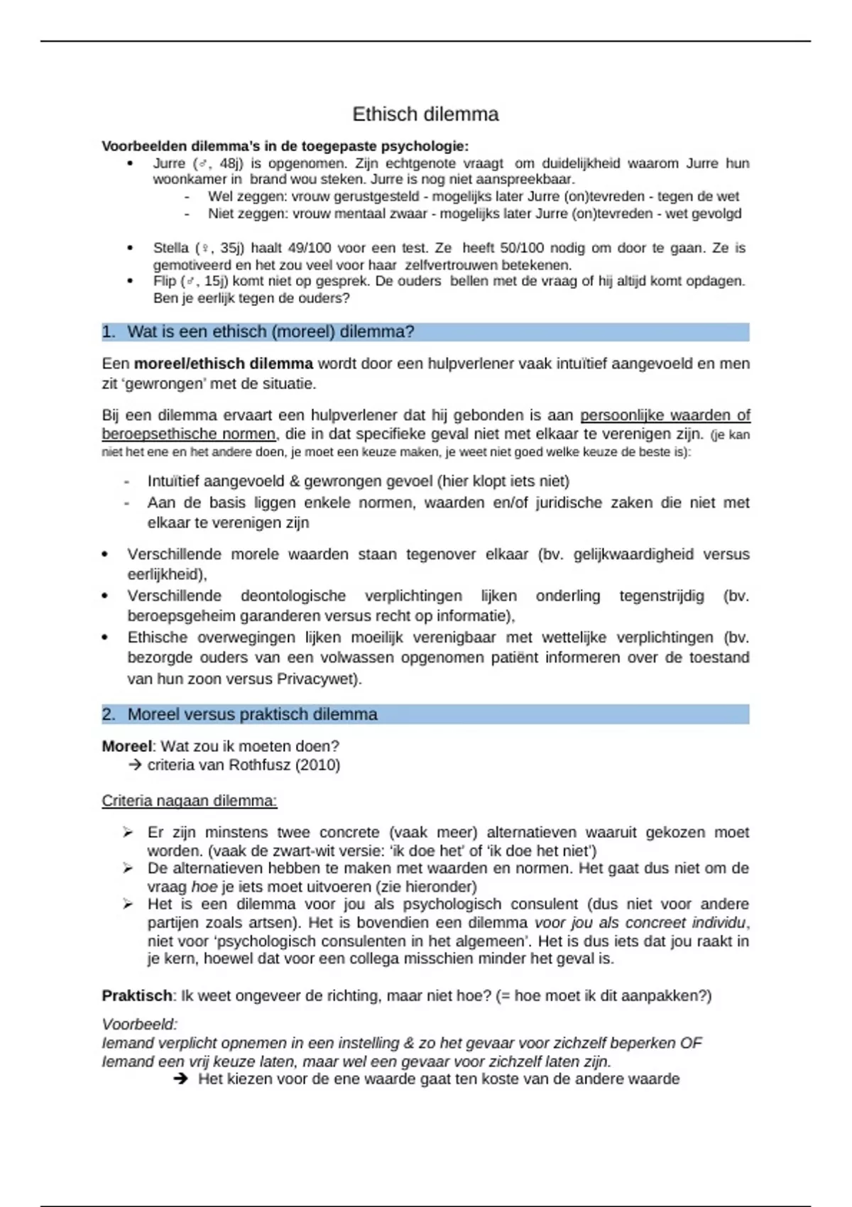 Voorbeelden dilemma’s in de toegepaste psychologie: