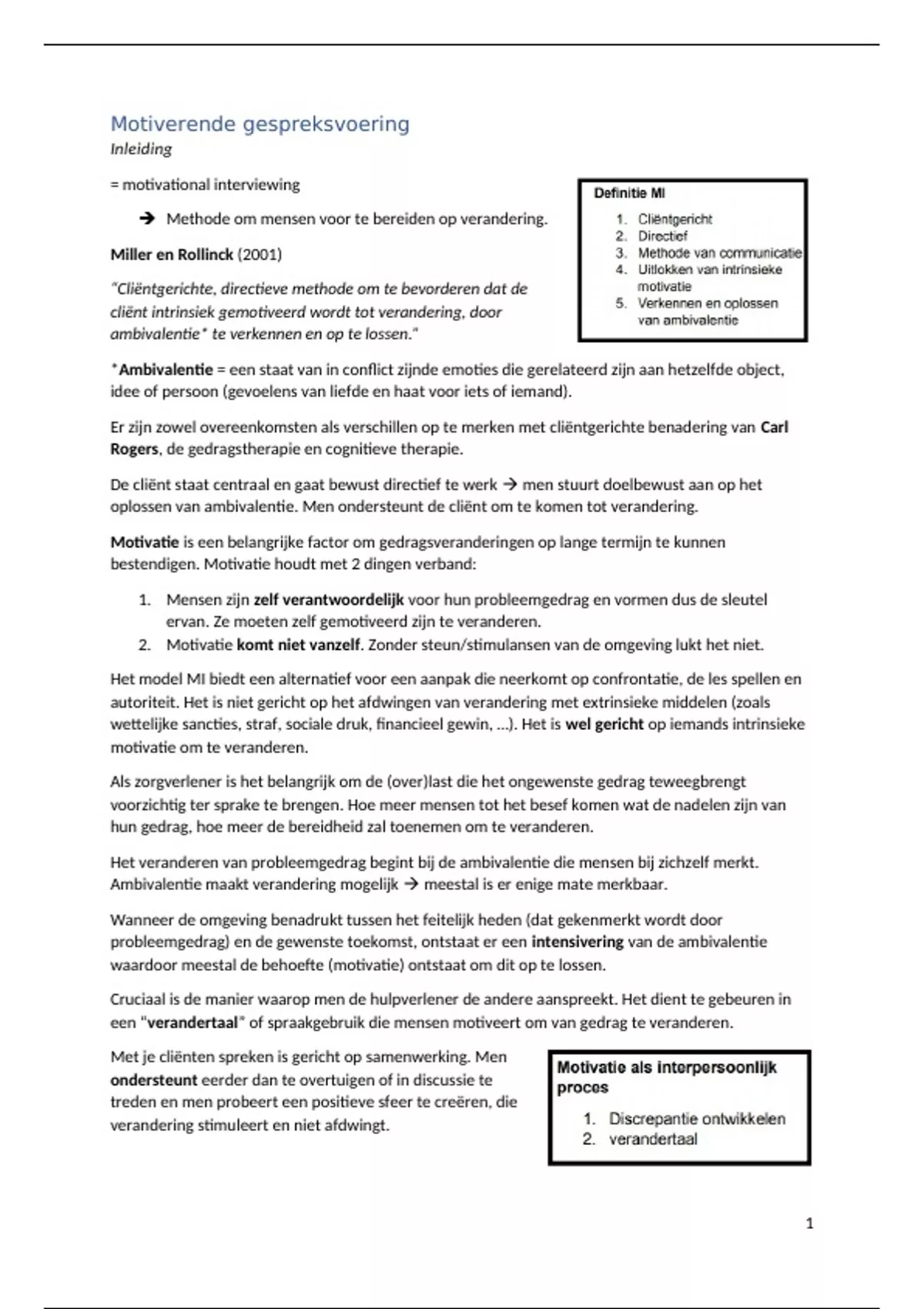 zelf voordelen ziet om te stoppen met het storende gedrag. Als MI op de juiste manier wordt
