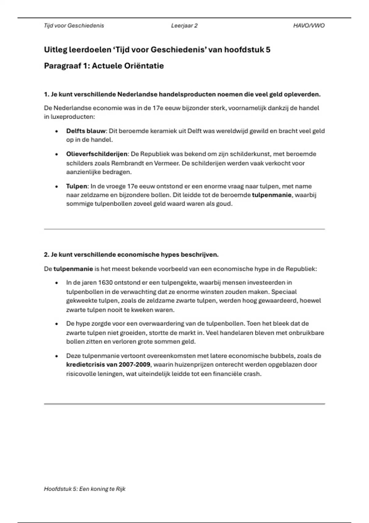 Uitleg leerdoelen ‘Tijd voor Geschiedenis’ van hoofdstuk 5