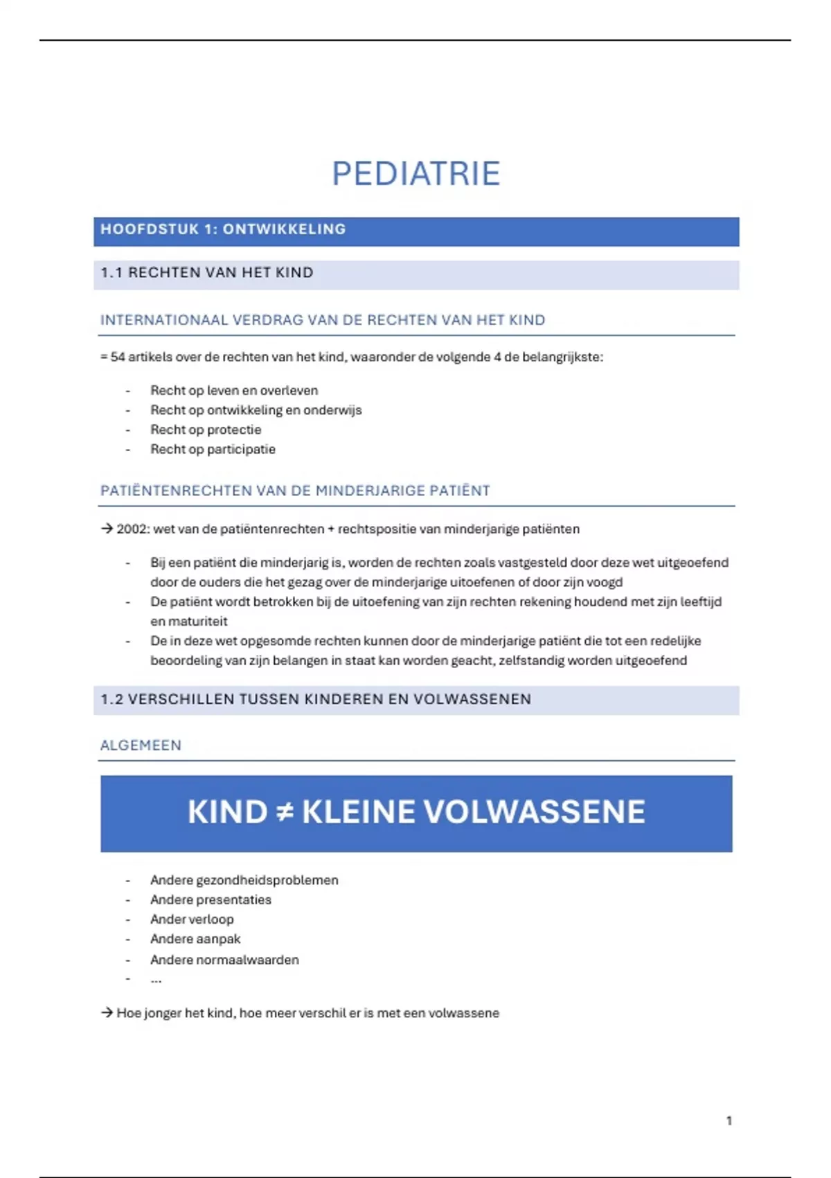 Een samenvatting van het vak pediatrie. Alles wat je moet weten staat in deze samenvatting. Haalde hele goede punten voor het examen. In principe moet je enkel deze samenvatting studeren.
