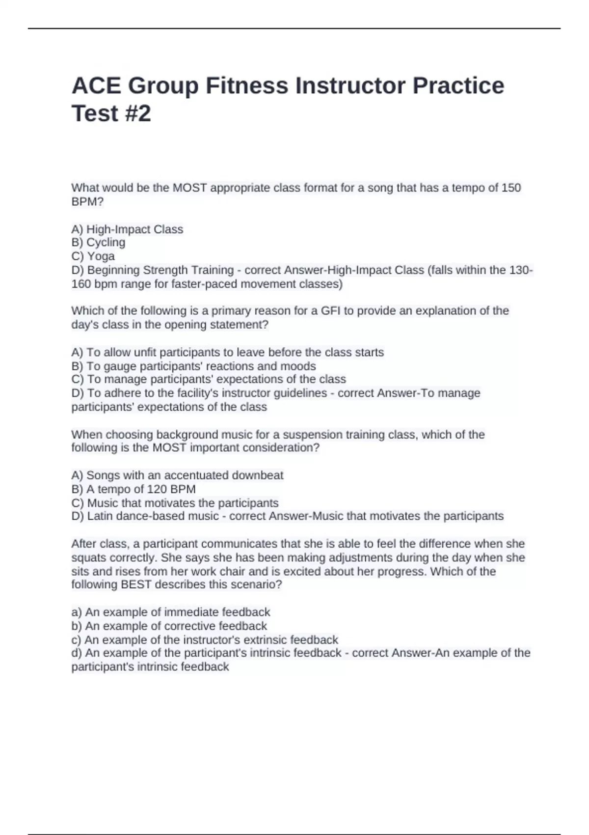 D) Beginning Strength Training - correct Answer-High-Impact Class (falls within the 130-