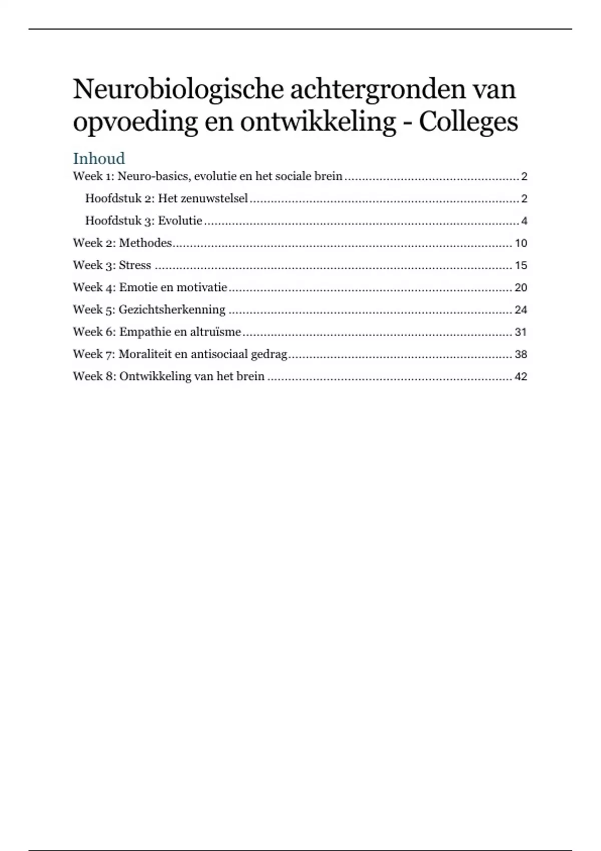Week 8: Ontwikkeling van het brein ...................................................................... 42