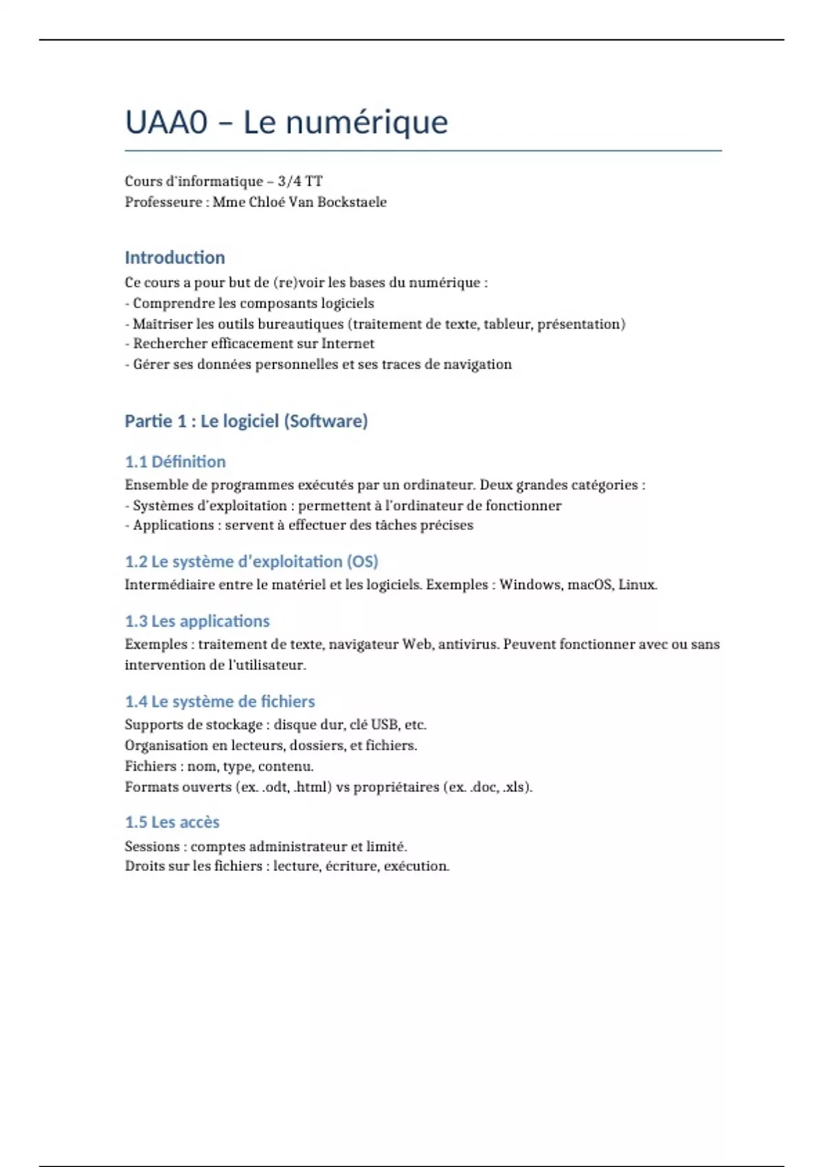 Cours d'informatique – 3/4 TT