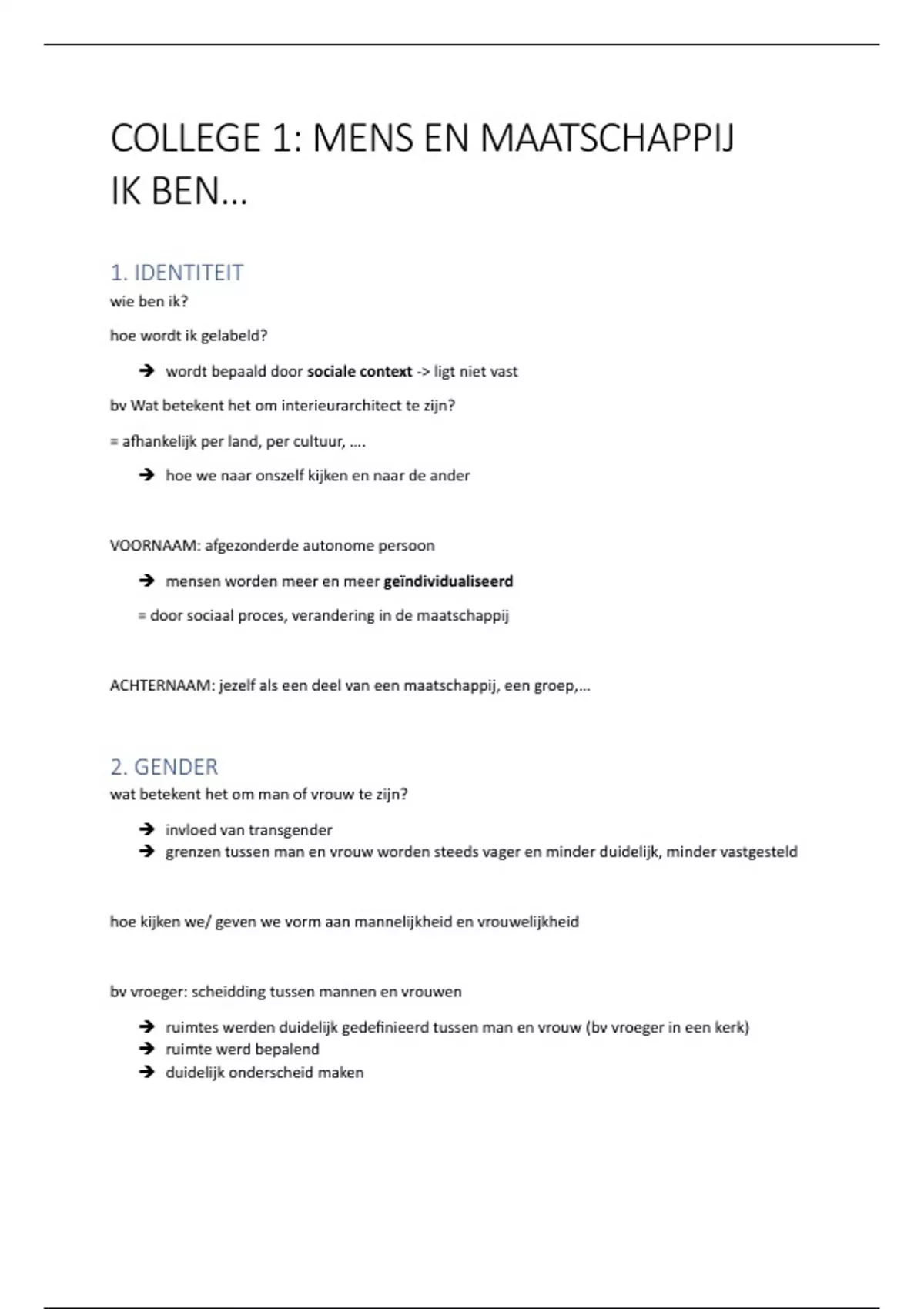 COLLEGE 1: MENS EN MAATSCHAPPIJ
