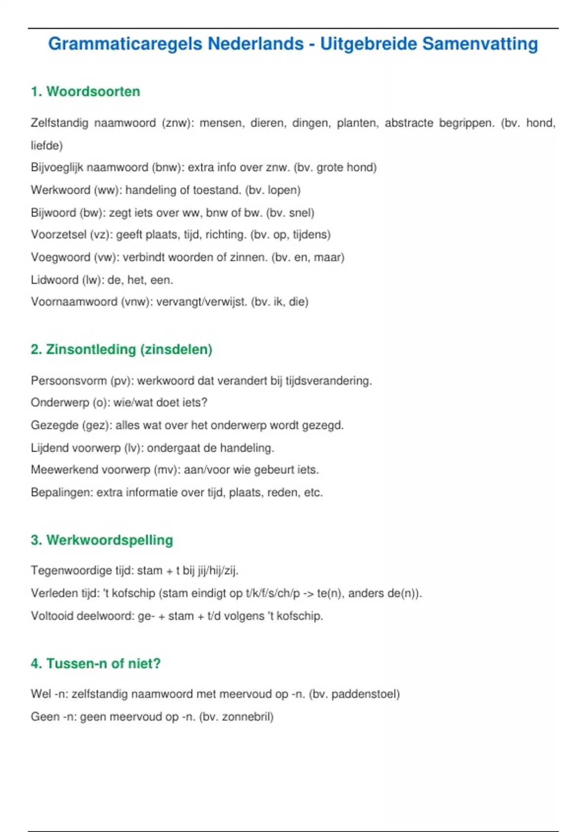 Grammaticaregels Nederlands - Uitgebreide Samenvatting