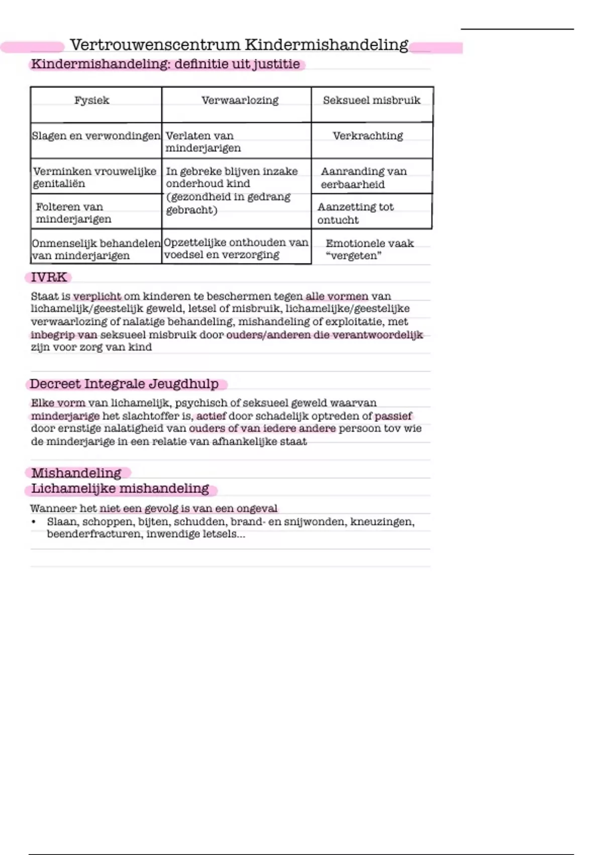 lichamelijk/geestelijk geweld, letsel of misbruik, lichamelijke/geestelijke