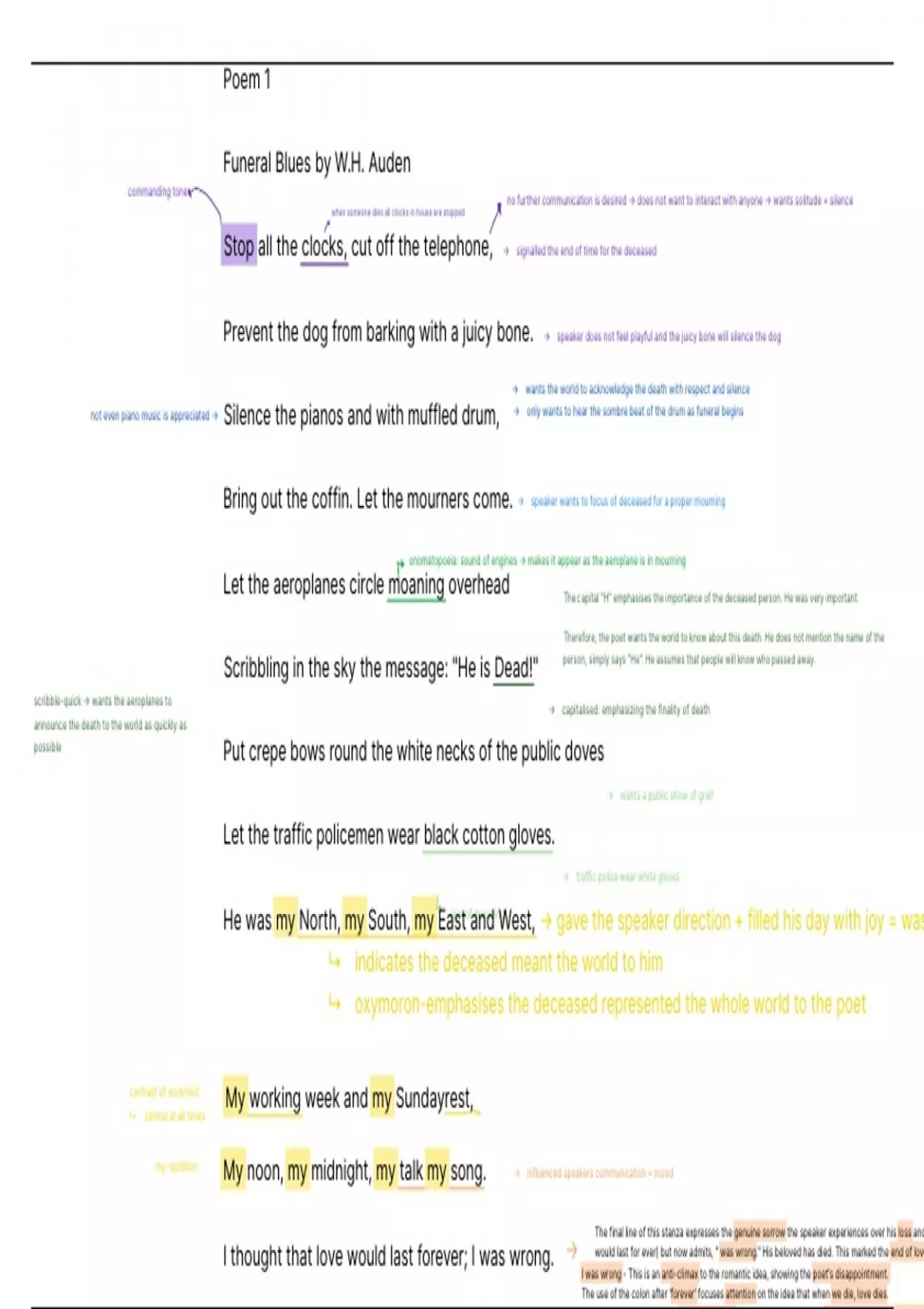 Stop all the clocks, cut off the telephone, → signalled the end of time for the deceased