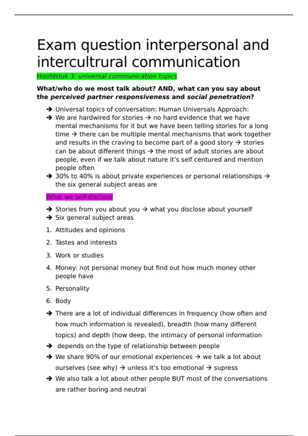 Interperosnal and intercultural comm antwoorden op de gegeven examenvragen (19/20 behaald)