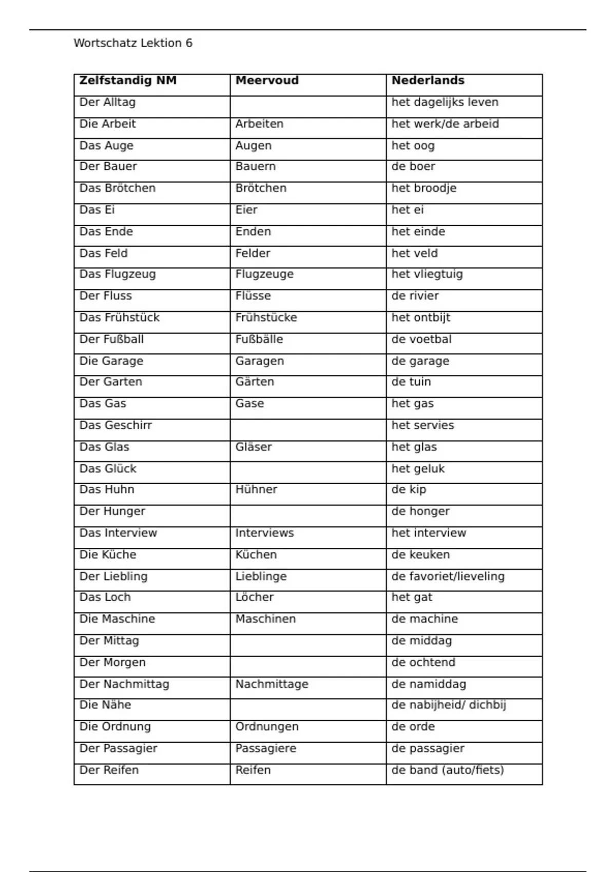 Wortschatz Lektion 6
