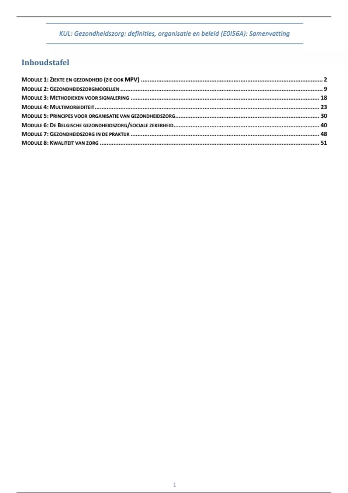 ,Module 1: Ziekte en gezondheid (zie ook MPV)