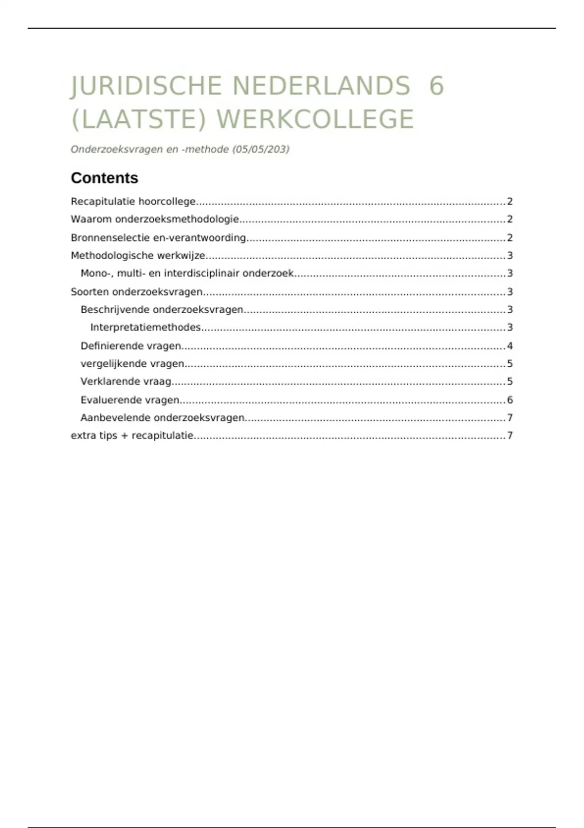 In dit document vind je notities + tips van het laatste werkcollege (6) van juridisch schrijven.