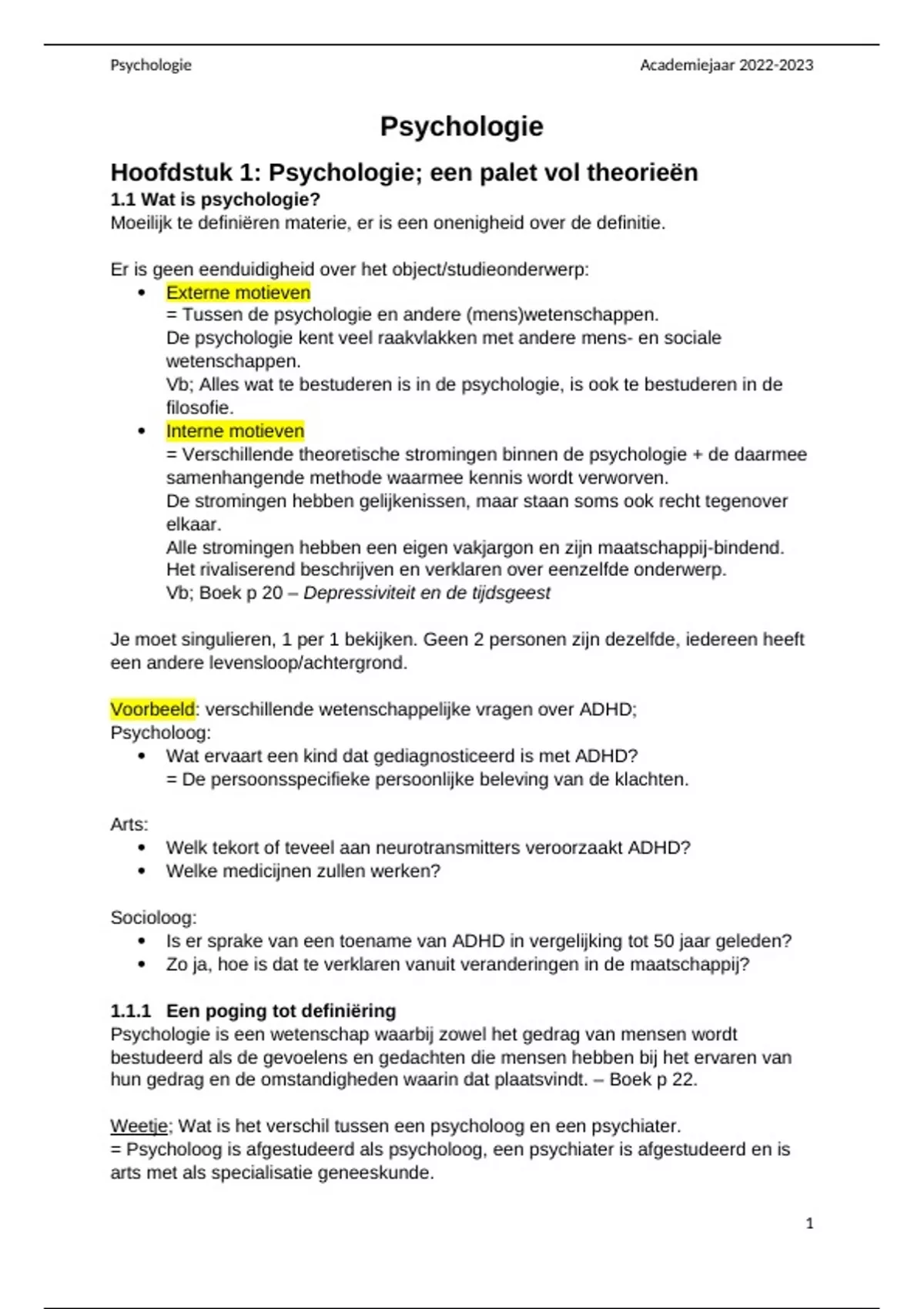 , Psychologie Academiejaar 2022-2023