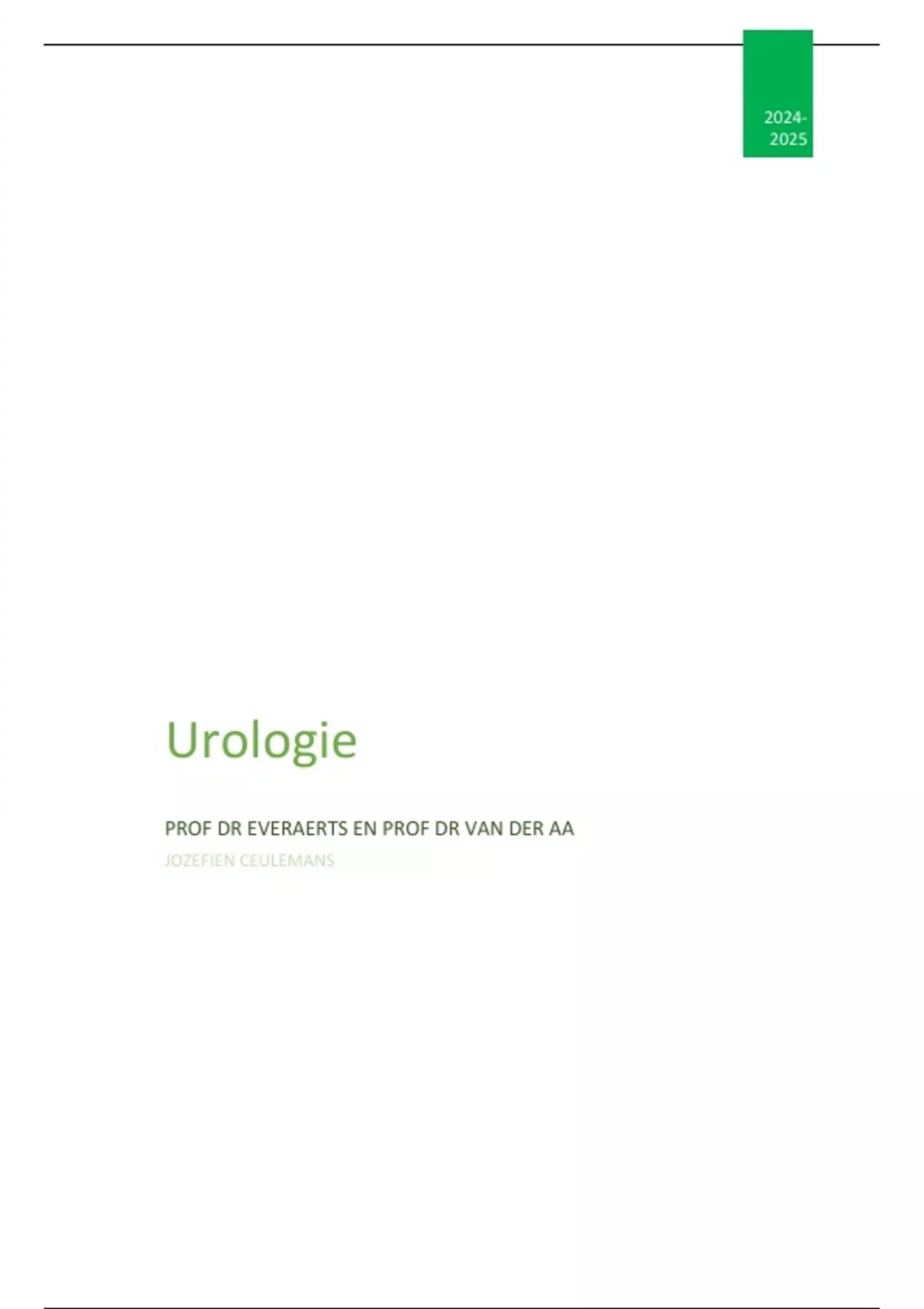 Deel urologie gegeven door Prof Dr van der Aa en Prof dr Everaerts aan 1e master GNK KUL Uitgebreide en duidelijke samenvatting van het onderwerp nier en urinewegen – gebaseerd op het handboek, de lesdia’s en de lessen zelf. Alles wat je moet kennen in één overzichtelijk document. Zelf gebruikt om een uitstekend resultaat te behalen – ideaal om tijd te besparen en je examen met vertrouwen aan te pakken!