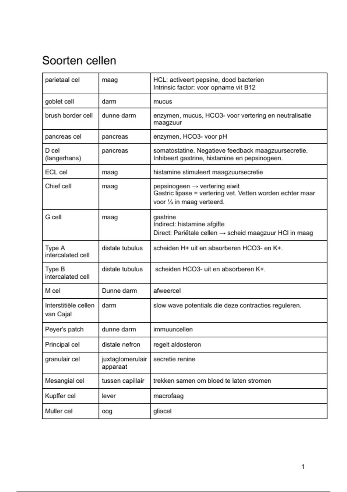 parietaal cel maag HCL: activeert pepsine, dood bacterien