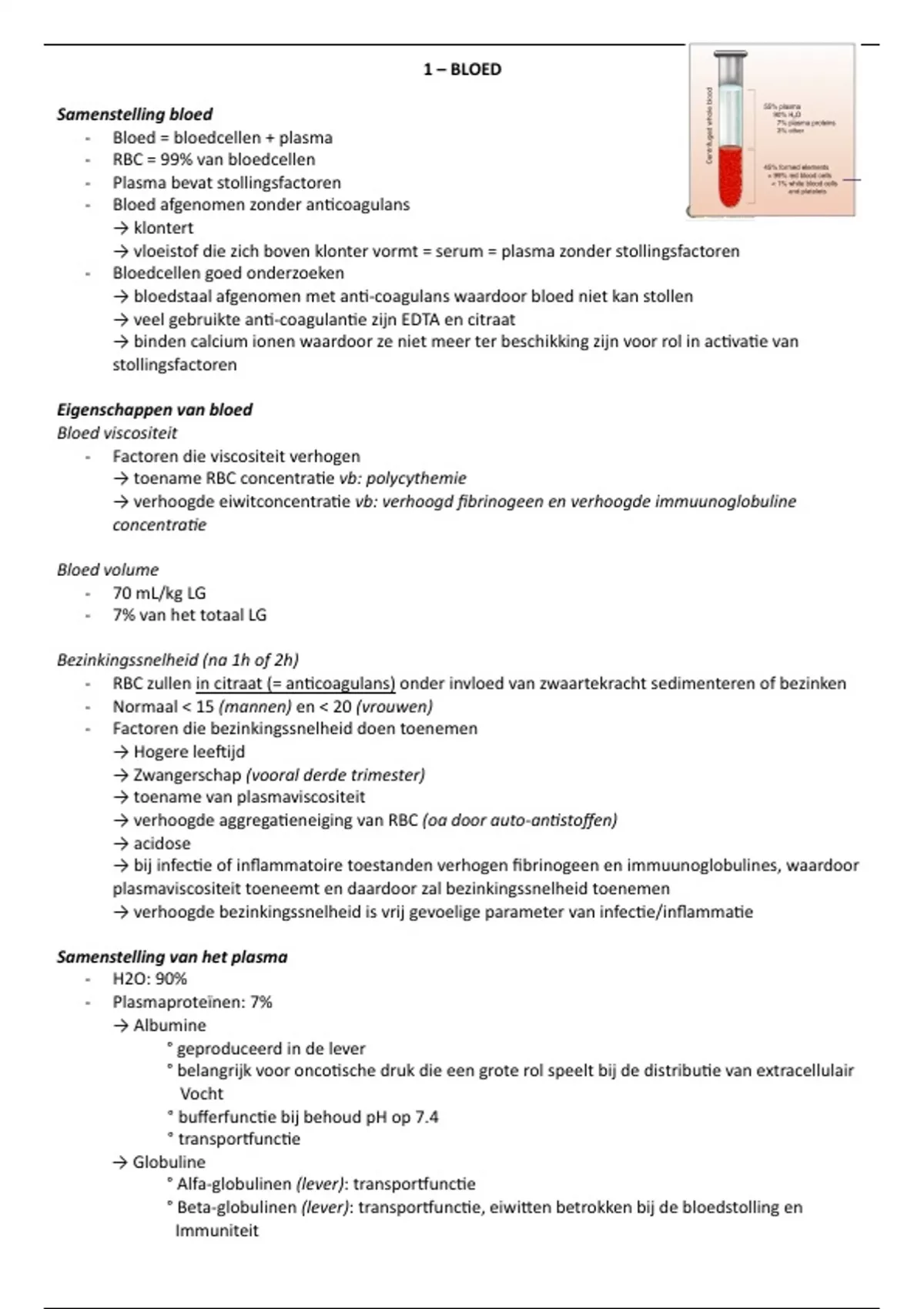 - Bloed = bloedcellen + plasma