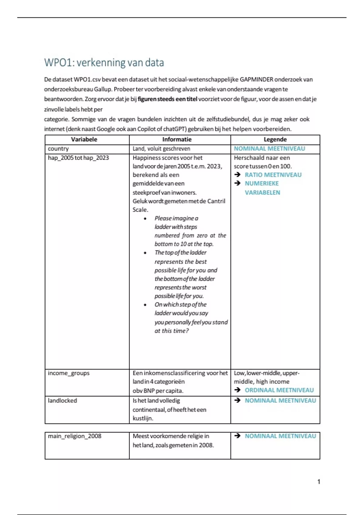 De dataset WPO1.csv bevat een dataset uit het sociaal-wetenschappelijke GAPMINDER onderzoek van