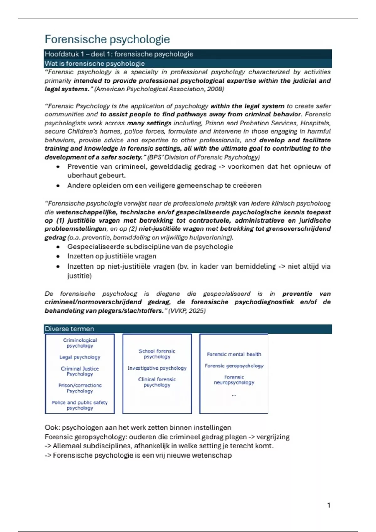 Hoofdstuk 1 – deel 1: forensische psychologie