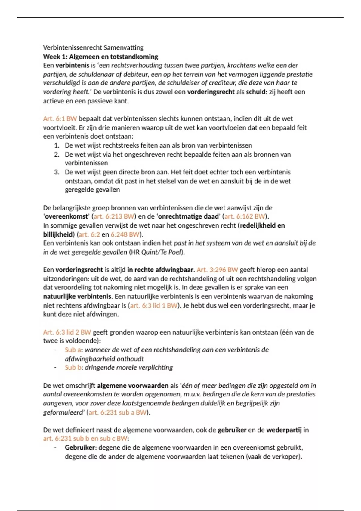 Verbintenissenrecht Samenvatting 24/25 Universiteit Leiden
