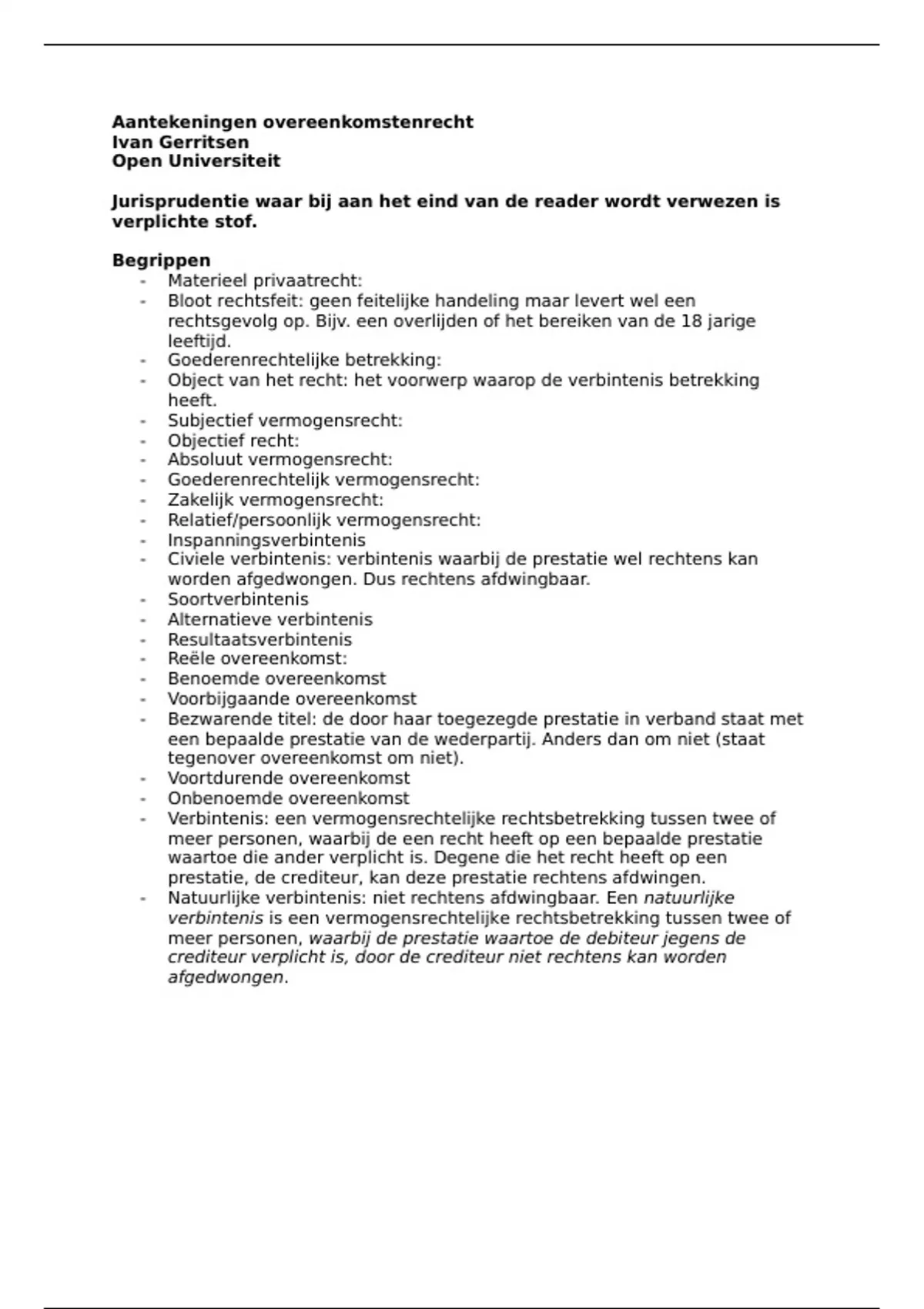 - Natuurlijke verbintenis: niet rechtens afdwingbaar. Een natuurlijke