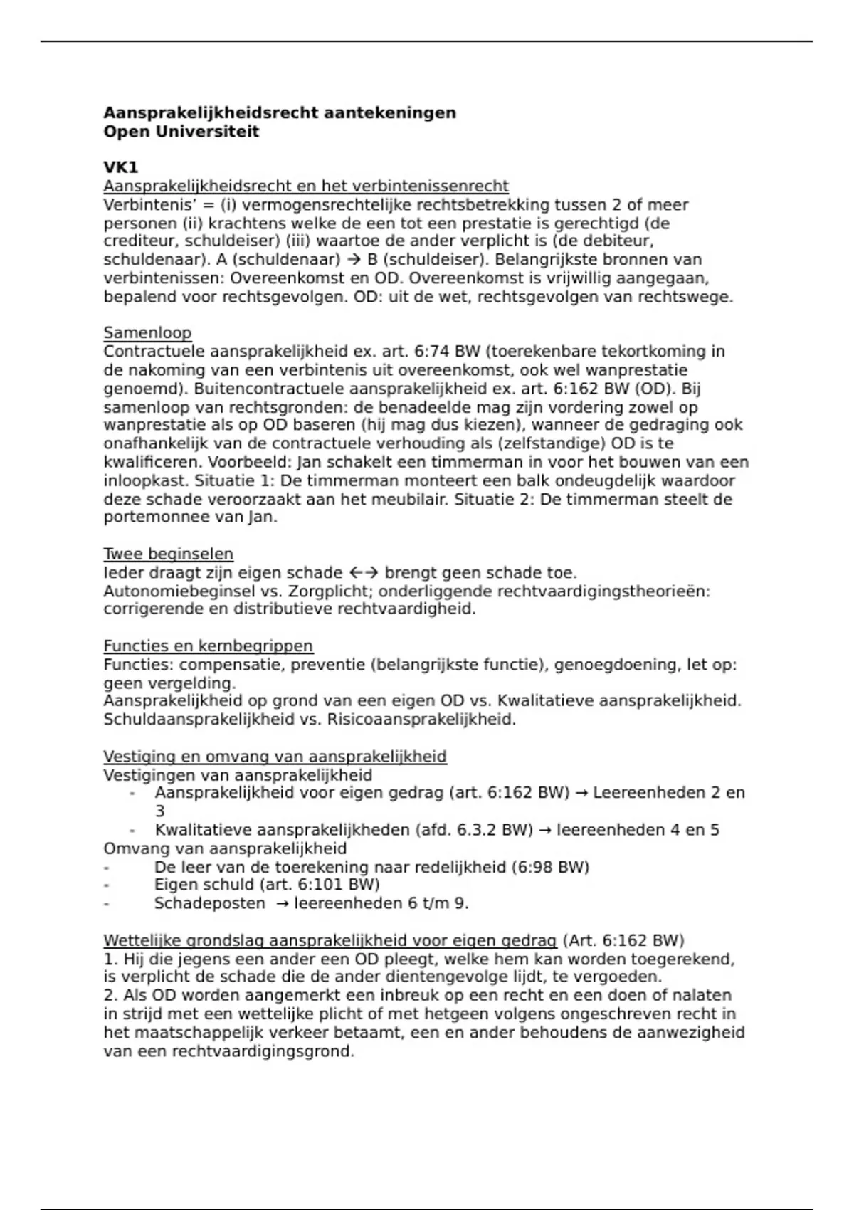 verbintenissen: Overeenkomst en OD. Overeenkomst is vrijwillig aangegaan,