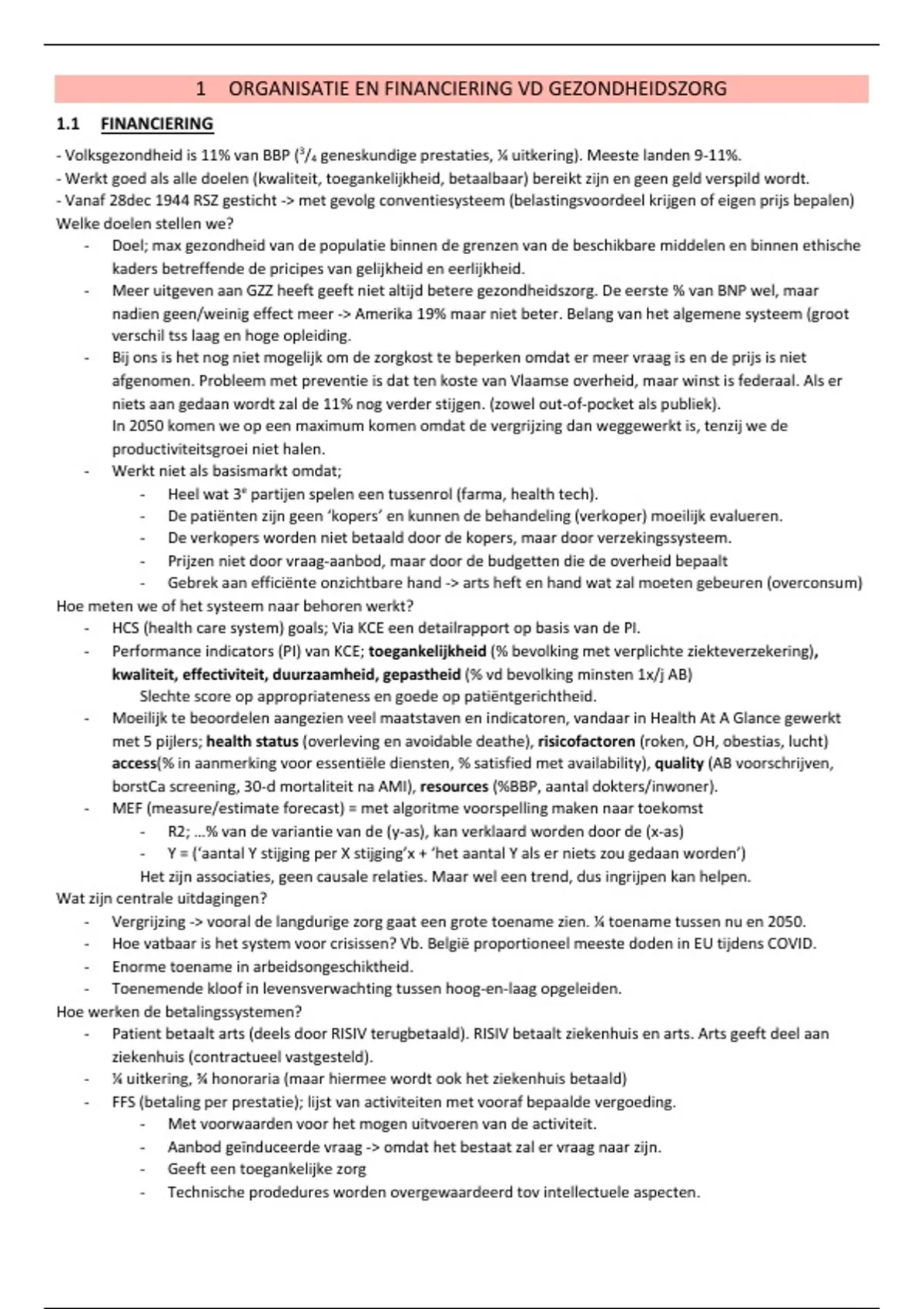 1 ORGANISATIE EN FINANCIERING VD GEZONDHEIDSZORG