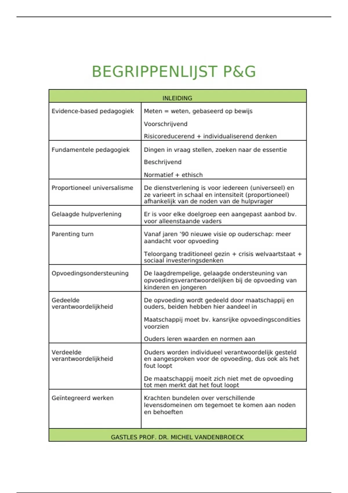 BEGRIPPENLIJST P&G