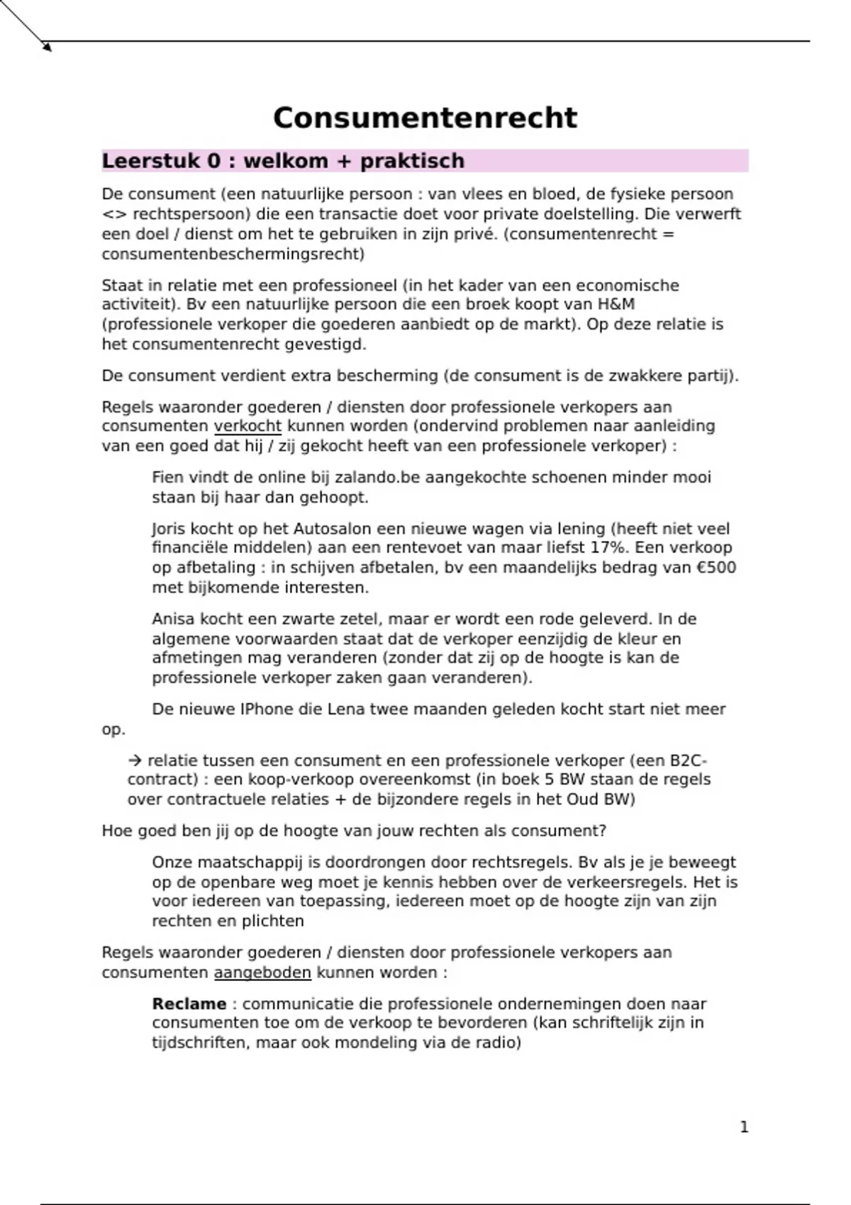 zowat alles van consumentenrecht staat hier in vermeld met bijkomende oefeningen